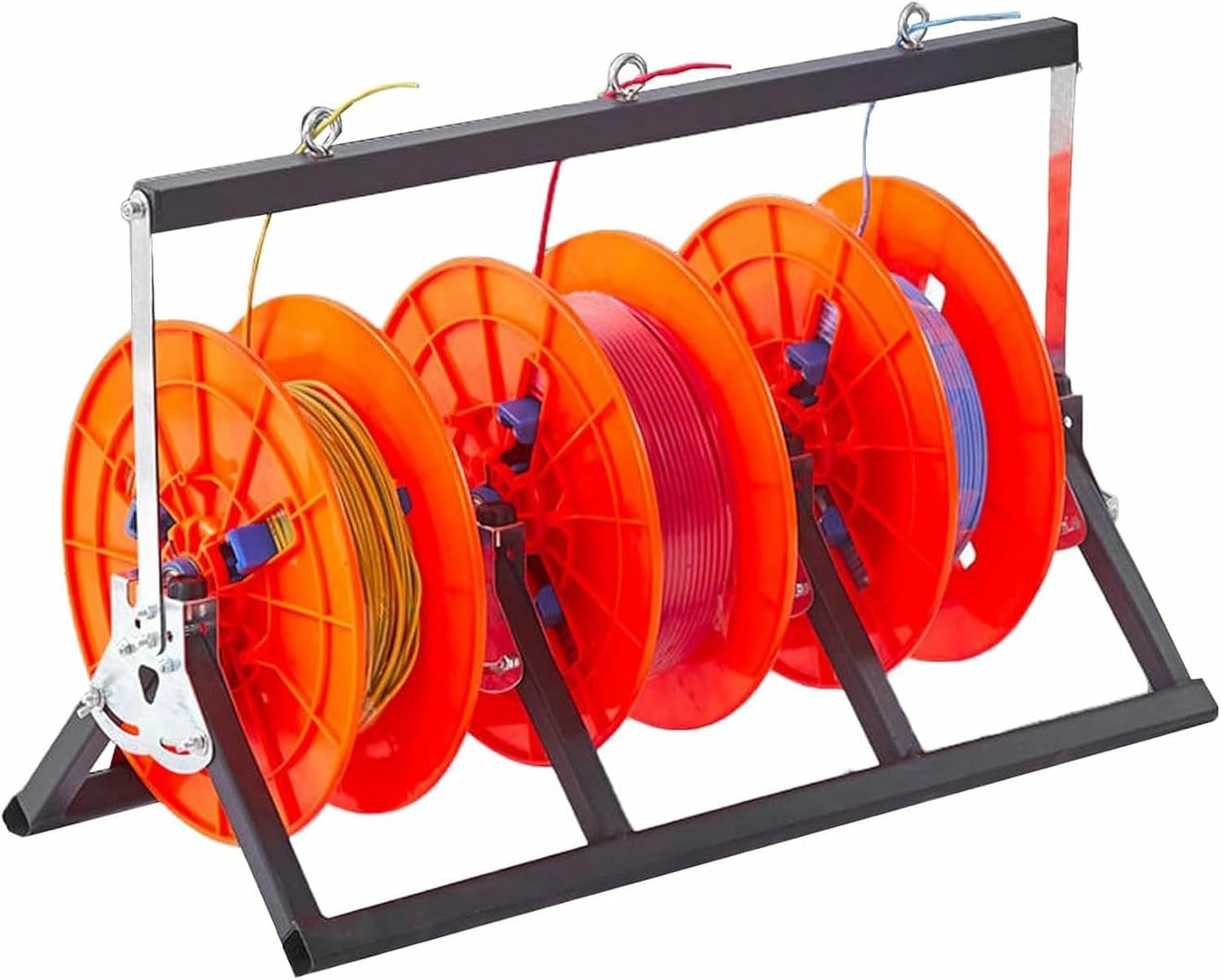 Why Choose It?It's a great solution for running cables and wires at construction sites, dispensing rope and paracord, or paying out wire and cable at retail locationsFeatures:Keep your spools organizedQuickly replenish or replace the spoolEasy to carry from one workplace to anotherCan be easily stored in a cramped roomCables of different colors and sizes can be stored and dispensedSPECIFICATIONS:Product Name: Wire Spool Rack/Wire Reel Rack/Cable reel rack/Portable Cable Line Holder/Electrical Wire Spool Rack/Wire and Cable Distributor/Cable Distributor CartColor: OrangeMade Of: Thickened carbon steel frame and ABS thickened plastic wire drumSize: As shown in the pictureSpool Size: Diameter 29cm / Thickness 10cm / Inner diameter 9-18 cmSuitable For Wire Range: β€10 square, 100 meters wire (adjustable)Applicable Scenarios: construction sites, warehouses, Factory workshops, indoor and outdoor workplacesVarious Spools: Wire, starter wire, heat shrink tubing, cable, rope, paracord, and even decorative ribbon from florists and craft storesPACKAGING INCLUDES:Wire Spool Rack x 1