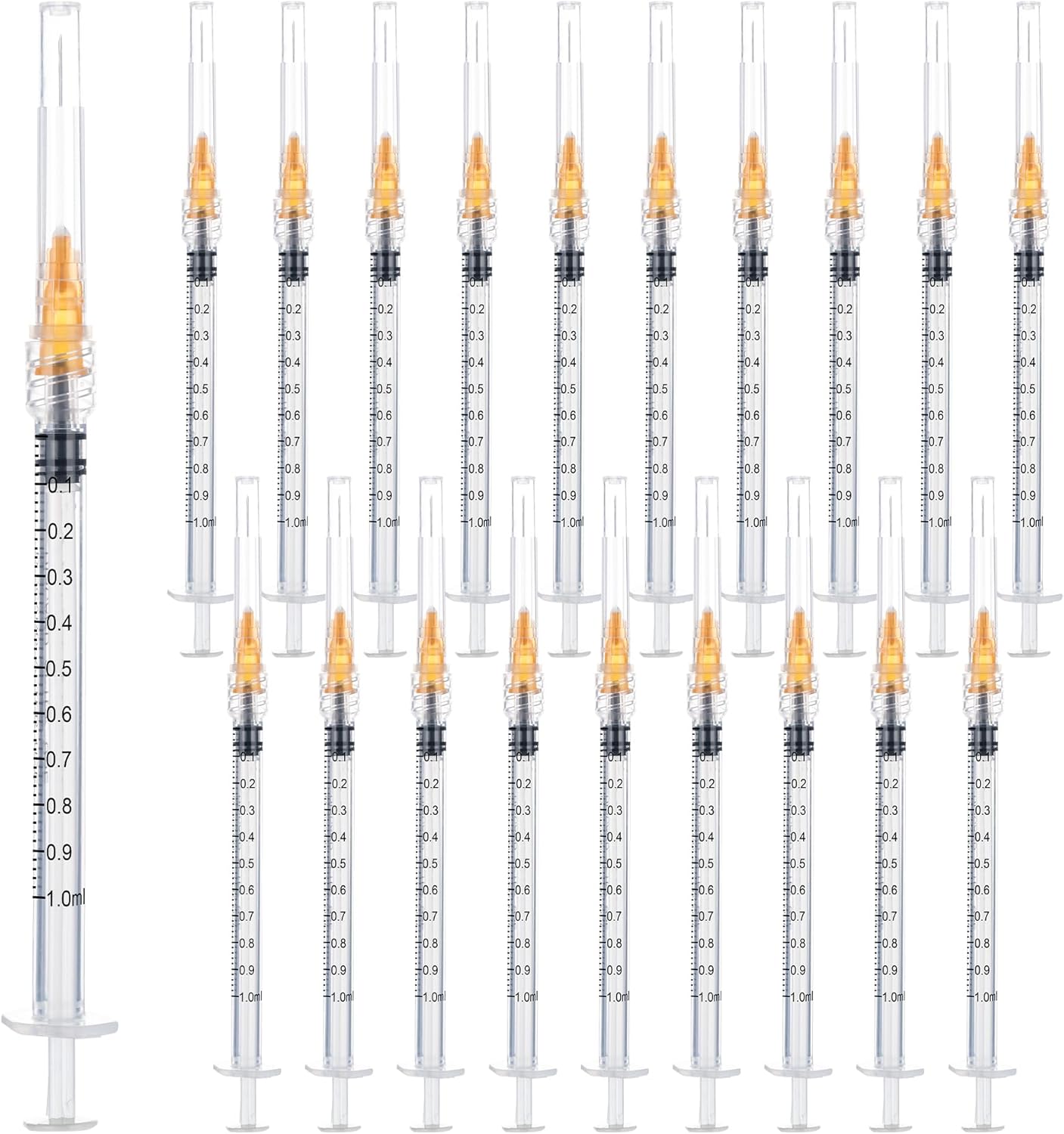 100 Pieces Individually Packaged Disposable Syringes with Needles with CapsMultiple Specifications to Choose from:1ml 27Gauge 1/2" Luer Lock1ml 27Gauge 1/2" Luer Slip1ml 25Gauge 1" Luer Slip2.5ml 23Gauge 1" Luer Lock2.5ml 25Gauge 1" Luer Lock3ml 23Gauge 1" Luer Lock5ml 21Gauge 1.5" Luer Lock5ml 22Gauge 1.3" Luer Lock1ml 25Gauge 1" Luer LockImportant Notes:This product is designed as a tool, not a medical device, and is not intended for human or animal use.Ideal for industrial, scientific, laboratory, plant cultivation, and animal husbandry applications.Suitable for precise handling of liquids such as essential oils and glue.