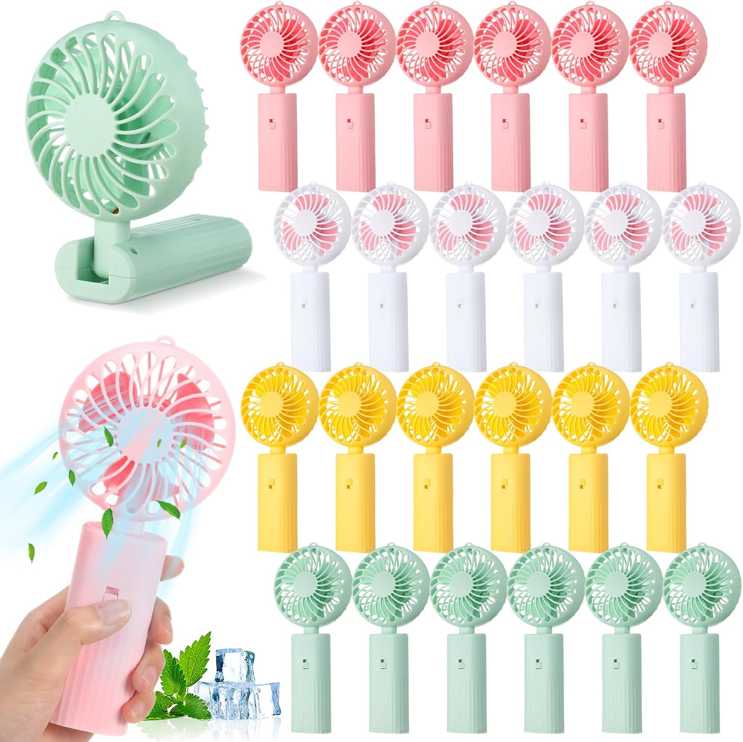 Features: Ideal gift idea: The folding fan is a good gift choice for your family, children, friends and colleagues, suitable for many occasions, such as: commuting, traveling, queuing, sports, camping, school, sports games, dance, fitness, makeup, office, etc., can bring you effective cooling. Multiple attractive colors: Our foldable portable fan comes in four delightful shades like ivory white, grass green, cherry blossom pink, and lemon yellow. These vibrant colors not only add a charm of color to your accessory, but also enable you to match the fan with your daily outfits or mood. Specifications: Color: ivory white, grass green, cherry blossom pink, lemon yellow Size: about 7.5 x 3.3 inches/ 19 x 8.5 cm Package includes: 12 x Mini handheld fan Notes: Manual measurement, please allow slight errors on size. The color may exist a slight difference due to different screen displays.