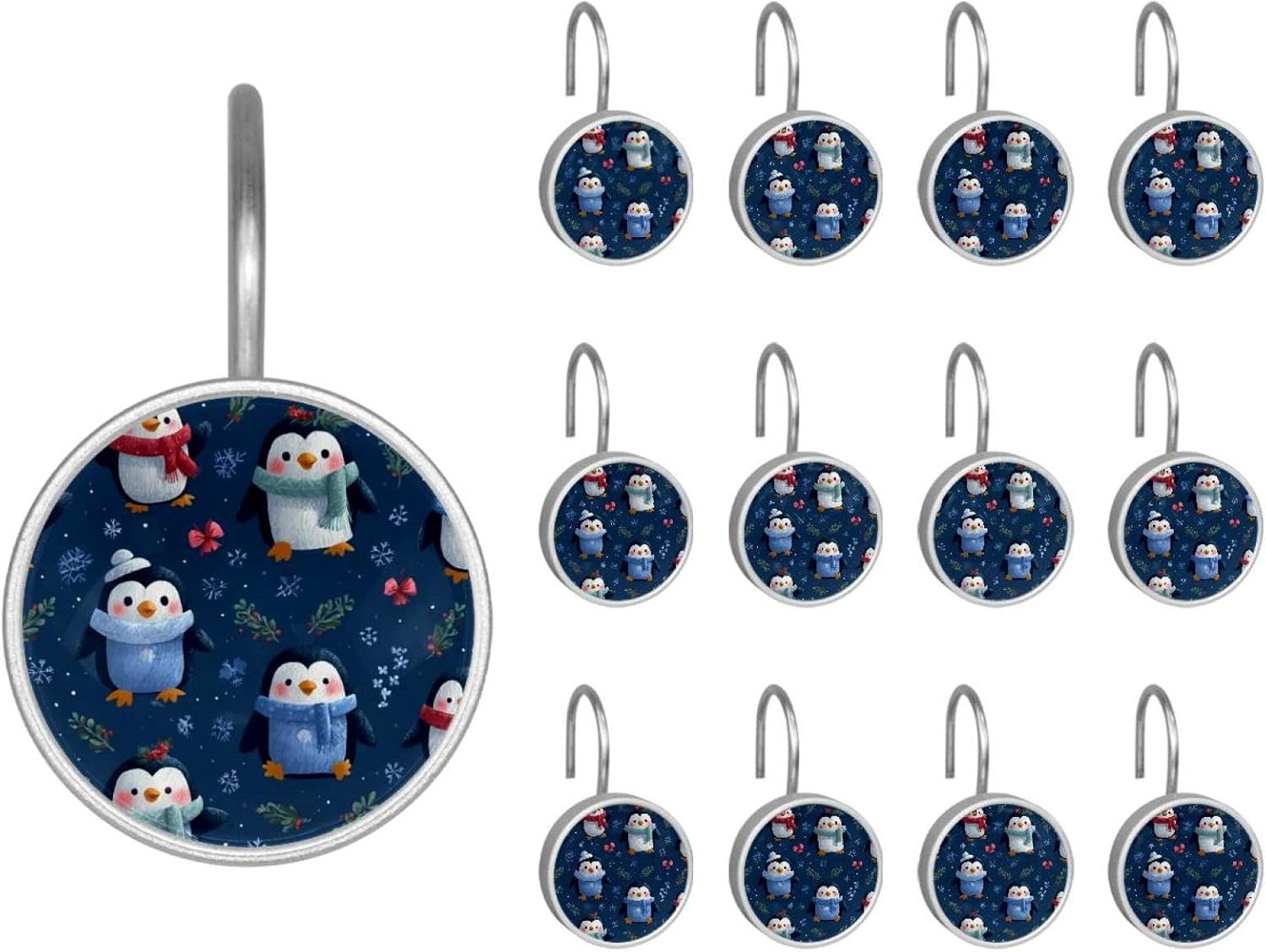 MATERIAL: glass, stainless steel. These shower curtain hooks can be decoration bathroom and will be long-lasting.12 pieces of shower curtain hooks, round crystal glass decoration, printed patterns, silver hooks to match various styles of bathroom shower curtains. SIZE: Crystal glass diameter of round shower curtain hook is 1.45x1.45in/ 3.7x3.7cm. The shower curtain hooks diameter is about 1.1in, 12 pieces shower curtain hooks are suitable for rod of 8-28mm(0.3"-1.1"). RUST RESISTANT:Shower hooks are made of stainless steel and crystal glass, which is durable, rust-proof and corrosion-resistant, it will not rust suitable for wet bathroom environment. EASY TO INSTALL:Hand the shower curtain hooks hold securely on straight or curved shower curtain rods,slid easily and smoothly. Easy to install and decorate your bathroom. BEAUTIFUL AND ELEGANT:Beautiful Love hook add charming scenery for your bathroom, baby room, bedroom, living room, and the gorgeous style is easy to match with any kinds of bathroom shower curtain. EASY GLIDE: Open and close your shower curtain quickly and easily with the Shower Hooks, easily glides on shower curtain rods and tension rods. No snagging; no effort; no hassle PACKAGE: 12 shower curtain hooks in a pack.The bathroom curtain hook has a smooth appearance and can be hung on the pole to pull it at will. Special price 12 sets to meet your needs.