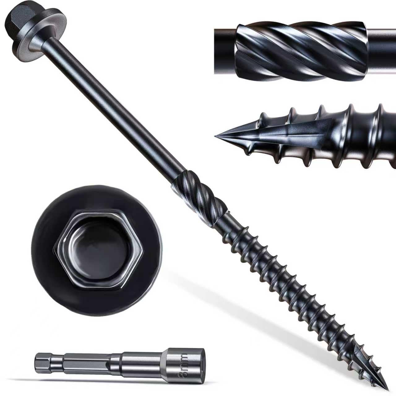 #14 x 10 " Wood Structural Screws 50 Pcs, Exterior Hex-Head Lag Screws, Black Heavy Duty Construction Timber Log Landscaping Wood Screws, Hex Socket Included