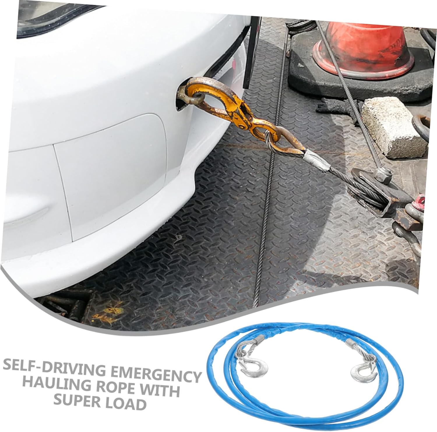 Package List 1 hauling cable Characteristics - Size: About 500x1.2x1.2cm car winch rope. - Material: Steel wire sturdy hauling rope. - The trailer rope is specially treated to prevent and reduce the vibration between the two cars steel wire car trailer. - Please do not the approved hauling rope. - It is convenient for you to pull the car from the anchorage hauling rope with hooks. - ColorBlue - The trailer rope is , and it is safer to use at night. - The forged iron hook is more secure and can prevent the iron hook from falling off when the trailer is used.Goods Descriptionsteel wire car trailer The product is made of sturdy steel wire material with premium hooks which is easy to handle, and much safer and stronger.sturdy hauling rope This item is a synthetic trailer rope with 5 meters in length, which can be used for SUV, trucks and other vehicles.car winch rope Please do not use tons