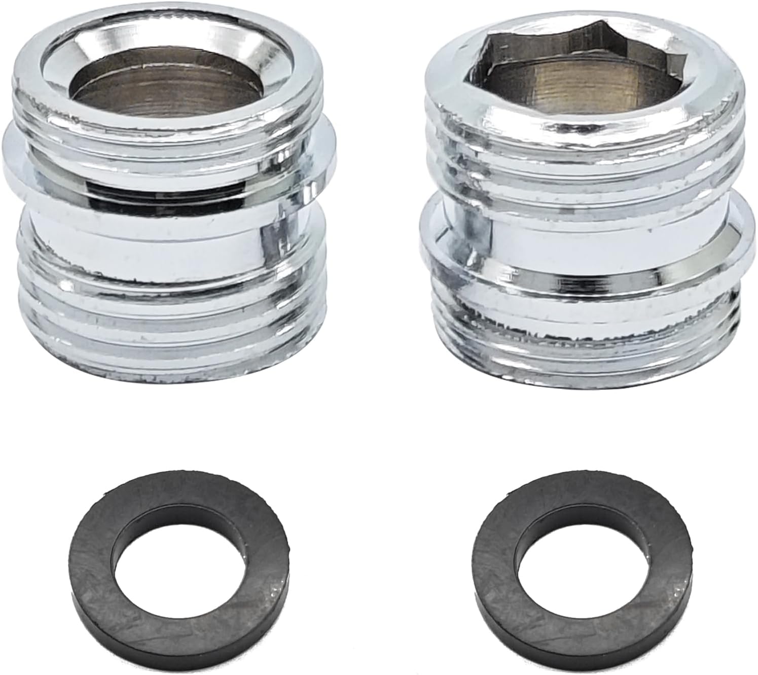 Features: Good compatibility: Suitable for most standard faucets, can be connected to kitchen, bathroom or garden sink faucet aerators Warm Tips: If your sink faucet does not have a removable aerator, these adapters will not work, please check carefully before purchase. Please allow 0.5-1mm error due to manual measurement. Please make sure you don't mind before bidding. Specification: Overall size: 20x17 mm/0.79x0.67'' Material: Brass Color: Silver Package Includes: 2 Pcs faucet hose adapters, 2 Pcs sealing washers