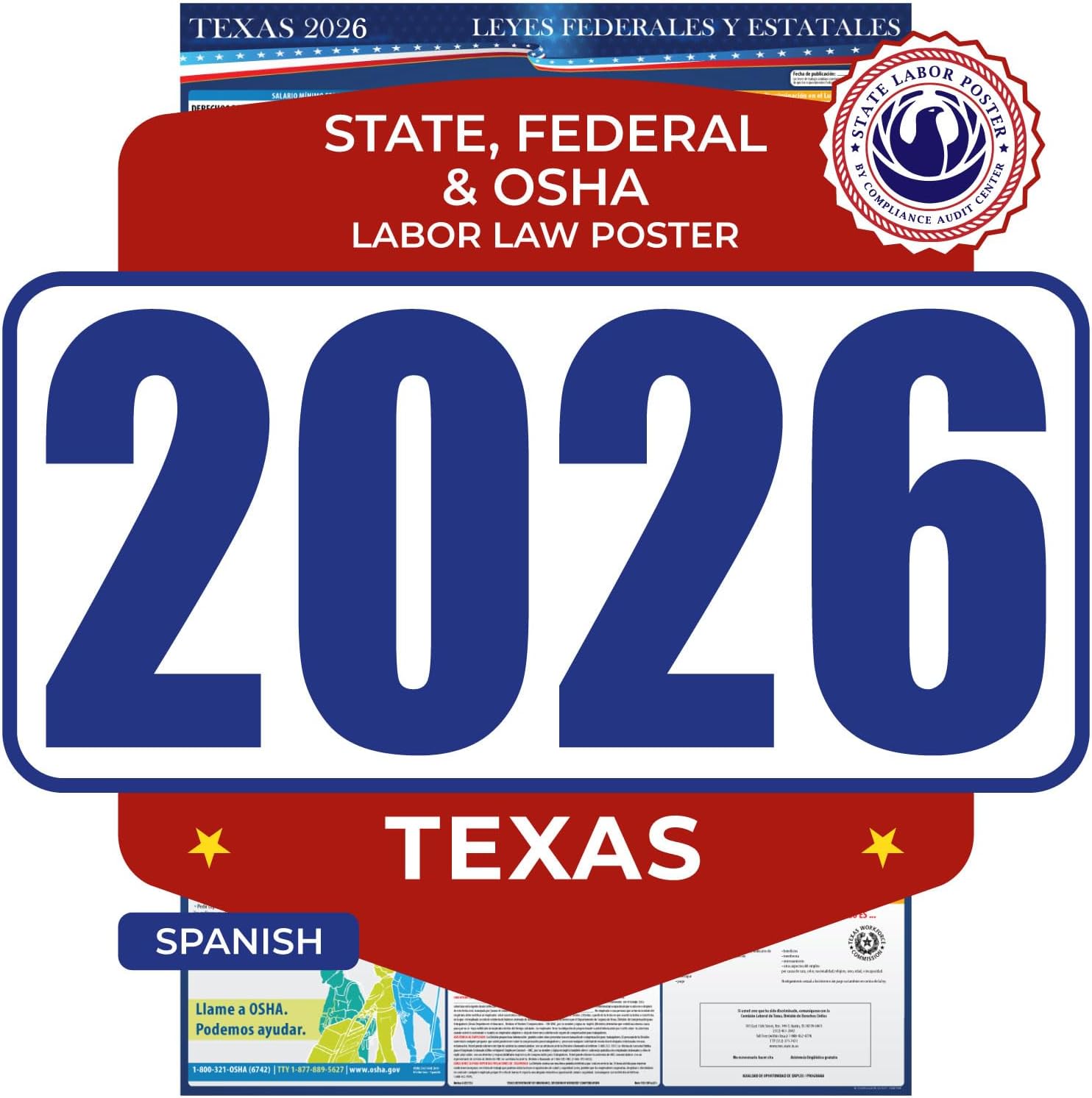 Our 2026 Texas Labor Law Poster includes mandatory federal, state, and OSHA compliant posting requirements for any type of business. We take pride in our poster being fully compliant, and up to date with all recent changes in the state and federal laws. Failure to comply with posting regulations can result in unwanted fines. All our products come with our 30-Day money back guarantee. Our 2026 Texas labor law posters include the Discrimination Notice, OSHA Update, Transgender Rights Notice, Workers' Compensation, Minimum Wage, + All Mandatory Postings. All of our state posters are 100% Compliance Guaranteed for all type of business owners. Texas employers are required to display both the federal minimum wage poster and the Texas minimum wage poster along with the other mandatory Texas, Federal, and OSHA posters.