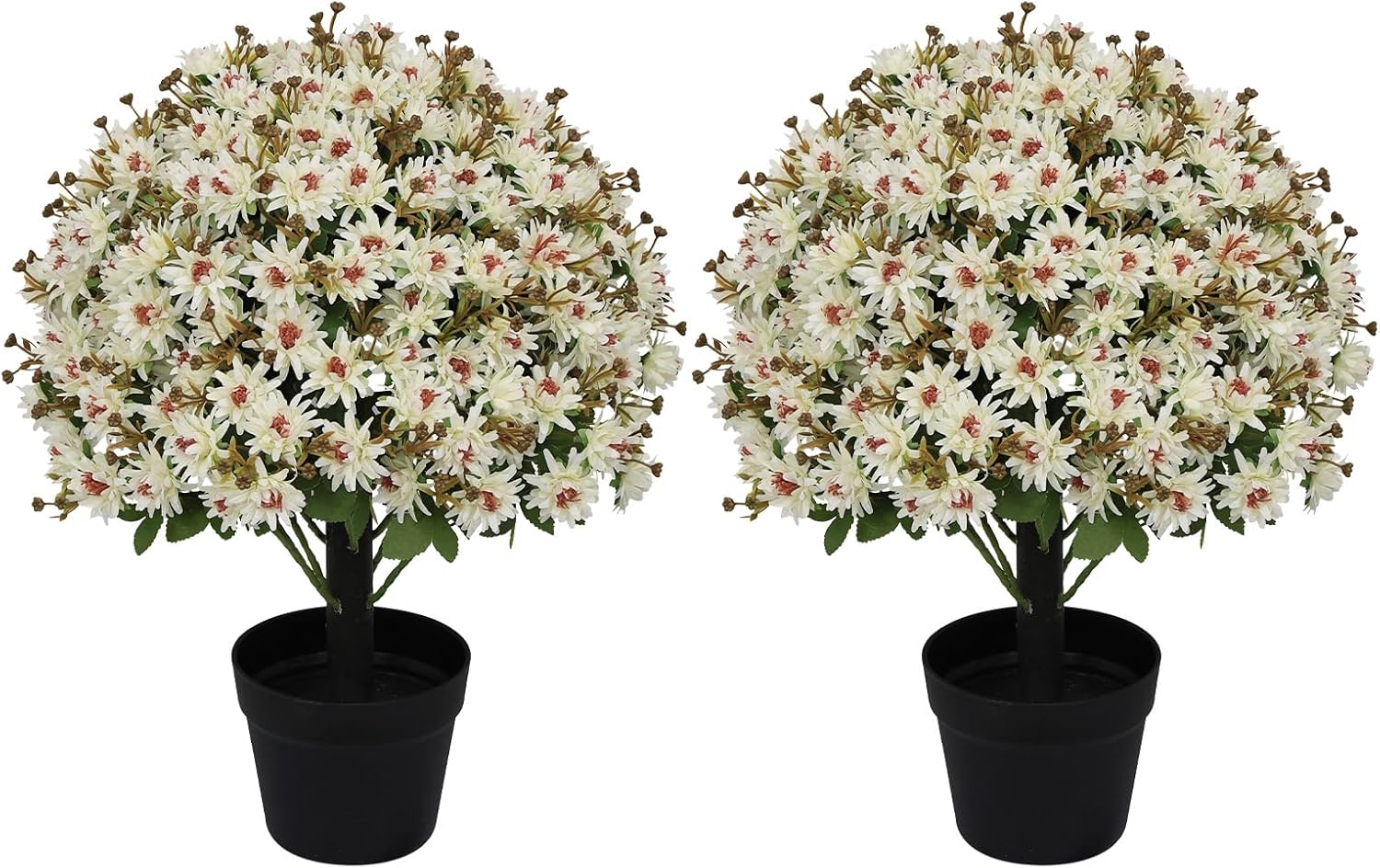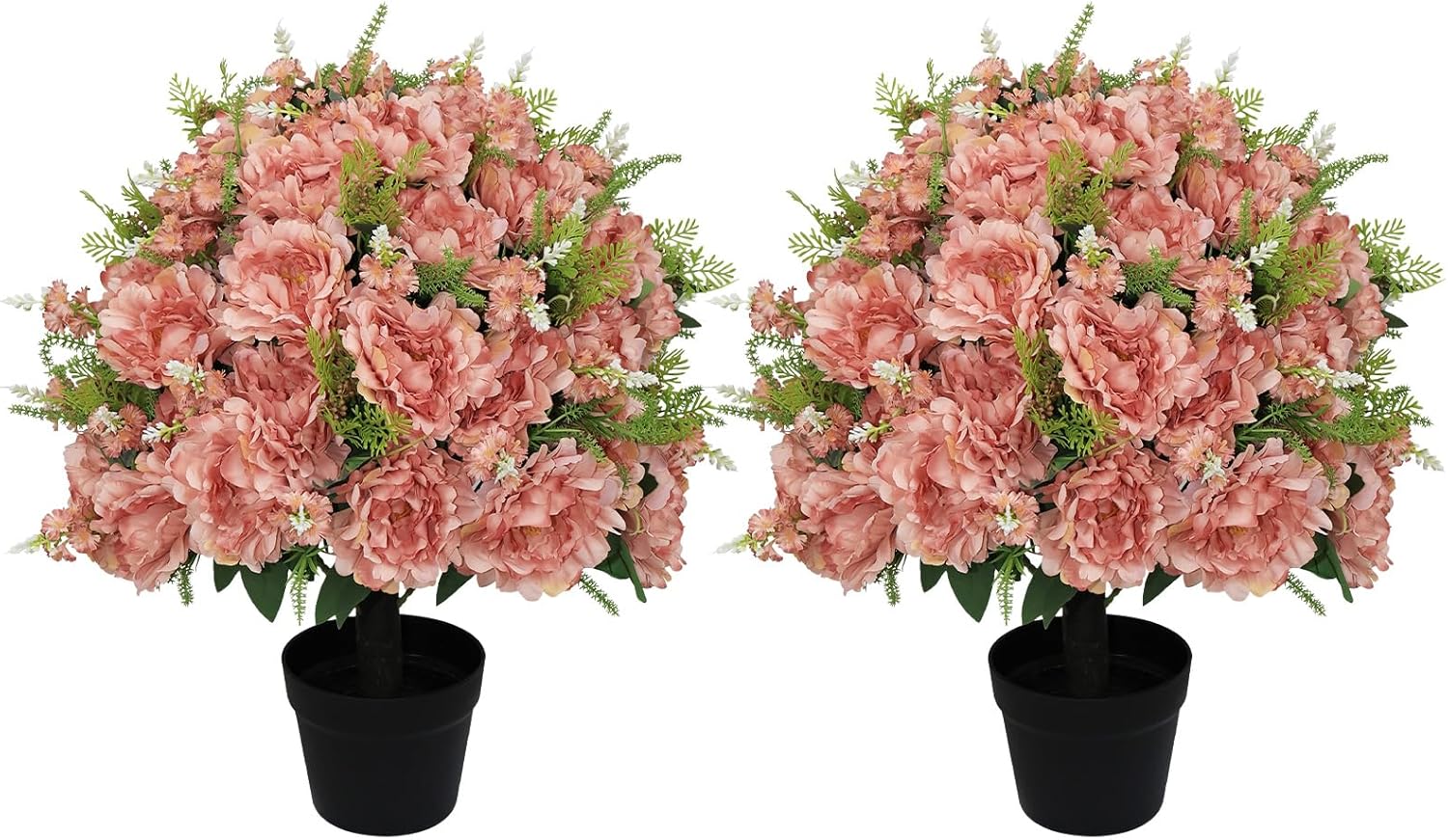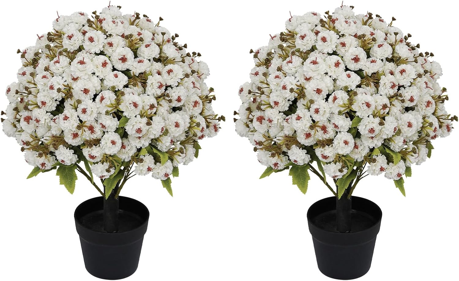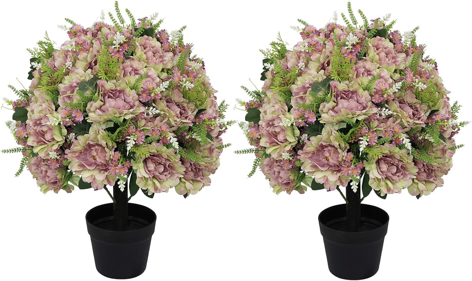 Bring lasting color and refined charm to your space with Binnny Flower artificial white rose potted plants. Designed to look beautifully realistic, each faux rose arrangement features full blooms, detailed petals, and rich green foliage for a natural, lifelike appearance. Set in sturdy cement pots, the plants come fully assembled and ready to display, making decorating simple and effortless. Crafted with UV-resistant materials, these artificial flowers help maintain their vibrant color over time and are well suited for indoor use or covered outdoor areas such as entryways, sheltered porches, or balconies. With no watering, trimming, or ongoing care required, they offer a maintenance-free alternative to real plants while keeping your space fresh and inviting year-round. Sold as a set of two, they are ideal for creating balanced, polished displays in both modern and traditional décor styles.