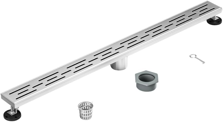 • Effortless Cleaning - Easily lift the grate from both ends using the included hook for convenient maintenance. The integrated strainer effectively traps hair and debris, keeping your drain clear and functioning smoothly.