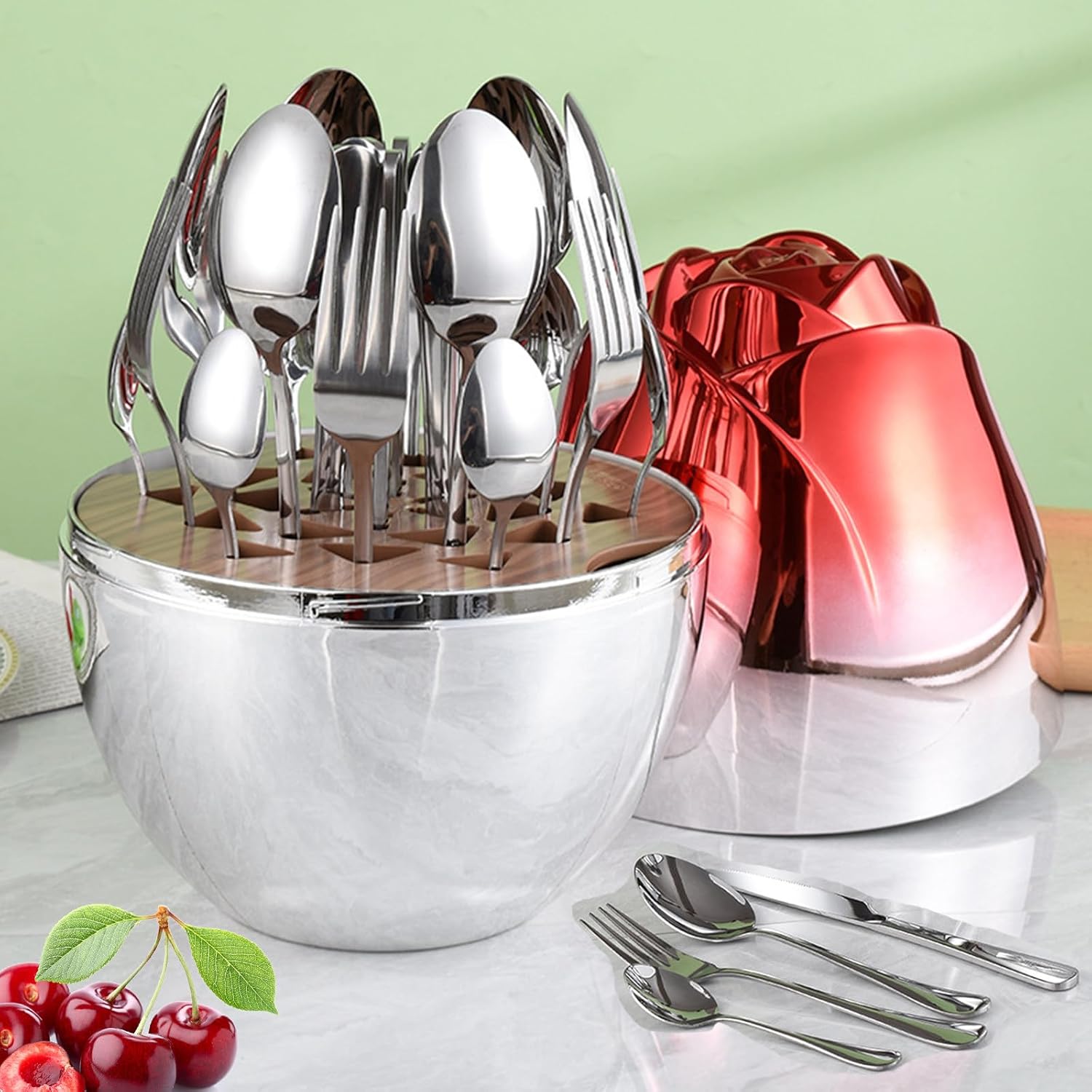 The 24 Piece Stainless Steel Cutlery Set Has Mirrors Polished, Smooth Edges, Smooth Handle Lines And Comfortable Touch.The Cleverly Conceived Rose Shape Box Is As It Were Outwardly Striking. Easy To Store And Clean. Permitting You To Appreciate Your Dinners With Class And Ease, For Everyday Use, Parties, Camping, Restaurants, And Hotels. Provide A Happy Dining Experience For You And Your Guests.Specification:Name: 24-Piece Stainless Steel Cutlery SetShell Material: PpTableware Material: Stainless SteelColor:As Shown Set:24pcs Set(6 Forks+6 Knives+6 Spoons+6 Tea Spoons)Number Of Users: 6Size: As Shown Product Packaging:1×Rose Shape Box6× Dinner Forks6× Dinner Knives6× Dinnerspoons6× Dinner Tea SpoonsNotes:1. Please Allow 1-3cm Deviation Due To Manual Measurement.2. Due To Light And Screen Differences, The Color Of This Item May Be Slightly Different From The Picture.3. Items In Pictures Are For Photography Purposes Only And Are Not Included In The Product.