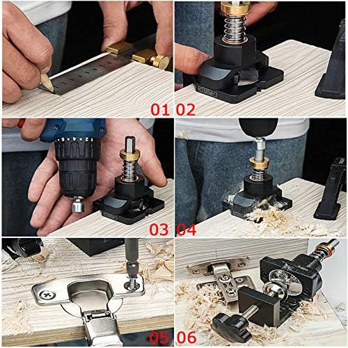 Description: Brand New And High Quality. Features: The Material Is Aluminum Alloy 6061,Surface Anodizing Treatment,Durable. The Hinge Positioning Puncher Is Equipped With A Quick Clamp, Which Can Be Fast And Firmly Clamped,And Improves The Punching Efficiency Without The Need For Strong Pliers. 35MM Hole Opener: CNC Precision Grinding, Original Thickened Alloy Blade, Faster Drilling And Long Service Life. Precise Punching: Clear And Precise Scale, Can Be Adjusted To The Appropriate Position According To The Thickness Of The Wood, Accurately Aligned. Application: Maximum Clamping Board Thickness: 32MM/1.26 Inch. Dowel Jig Is Designed For Installing Hinges Of Furniture Door,Help Drilling Center Hole. Specifications: Material:Aluminum Alloy Color:Black Size:As Shown Package Include: 1PCS X Punch Locator (With 35MM Hole Drill) 2PCS X L Type Adjusting Wrench 1PCS X Hex Bit