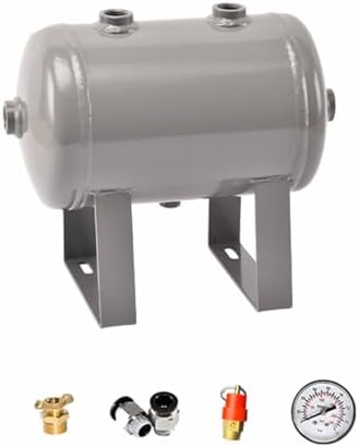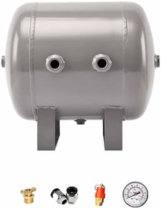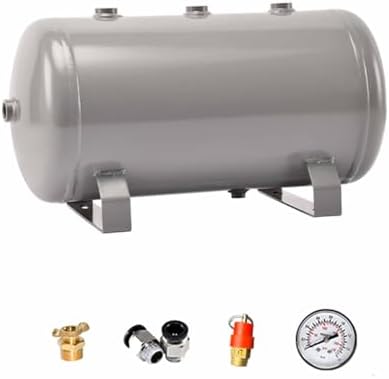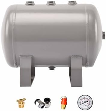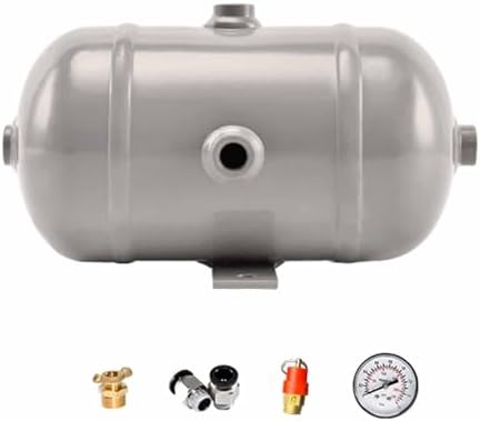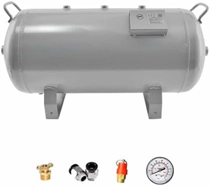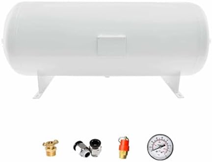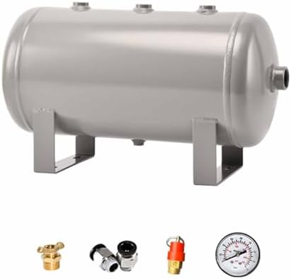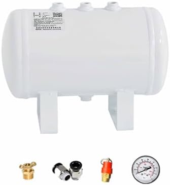 Introducing our versatile Air Reservoir Tank, designed to enhance efficiency in various applications such as industrial production, automotive energy storage, and vacuum buffering systems. Constructed from durable carbon steel, this tank is built to withstand a maximum pressure of 1.25Mpa (approximately 12kg/26.5lbs), providing reliable performance for your needs. Whether you're working in manufacturing or automotive sectors, our air reservoir tank serves as an essential component for efficient gas management. Its robust design ensures safe operation when paired with compatible connecting parts such as trachea joints, plugs, safety valves, pressure gauges, and drain valves. Please note that careful debugging is required before use to ensure optimal performance. One of the key advantages of our air storage tank is its simplicity; it does not require registration or periodic inspections during its recommended service life of 7-10 years. However, once the service life is reached, it should be properly disposed of to maintain safety standards. For safety, always ensure the tank is placed on a flat, stable surface to prevent any vibrations that could compromise the welded joints. This precaution helps avoid potential accidents and ensures the longevity of your investment. Included in your purchase is the Air Reservoir Tank along with all necessary installation accessories, making setup straightforward and hassle-free. Please be aware that slight variations may occur between the product image and the actual item due to lighting and display settings. Additionally, as a handcrafted product, there may be minor size discrepancies of 1-2 cm. Elevate your operational efficiency with our reliable Air Reservoir Tank, a smart choice for those looking for quality and performance in gas storage solutions.