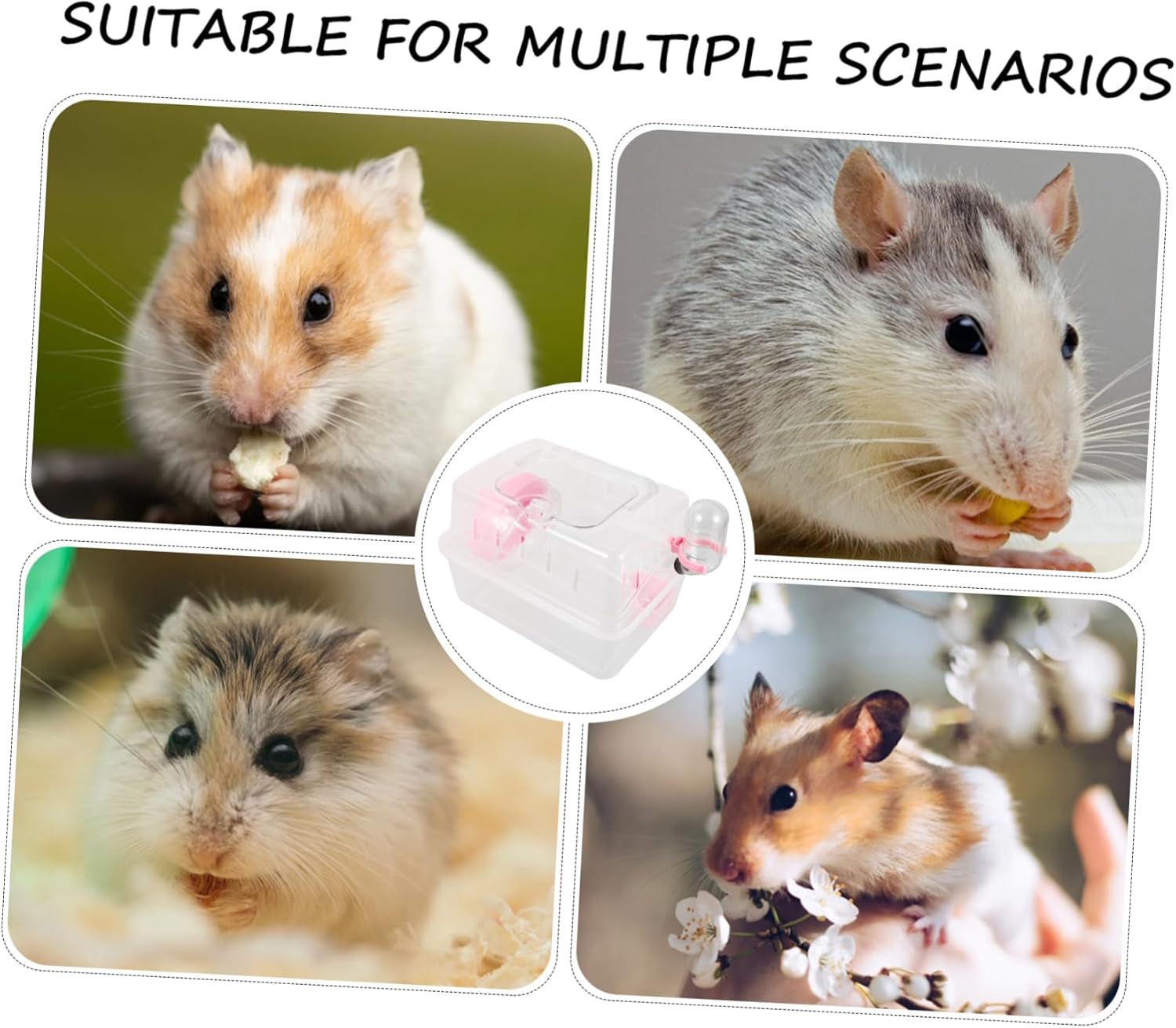 Package List 3 x hamster cage Characteristics -Material:Plastic - Size: 23.00X16.80X15.50cm/9.04X6.60X6.09in small carrier - Color: Multi hamster playing box - Hamster Carrying Box: When traveling with your small , this carrying box can give your little pet a safer container hideout. - The design of the hamster cage is multifunctional, making it easy to care for and maintain, give you convenience to use. rabbit cage accessories - The cage is easy to clean and maintain, making it convenient for pet owners, for hamster travel using, very portable hedgehog cage. - Hamster Carrier Case is suitable for small animals like , hamster, and so on. Give you more convenience to carry pet. hamster travel container - The plastic material used in the cage is and long-lasting, ensuring its longevity. Meet your long time using needs. cageGoods InformationSmall Cage With this carrier, you can take your pet with you anytime, anywhere.outdoor pet cage Its plenty room design pets feel comfortable in it.outdoor hamster cage The Pet Carrier is made of plastic material, keeping the pet comfortable and .rabbit travel cage This Pet Carrier case is designed for your lovely hamster and other small animals