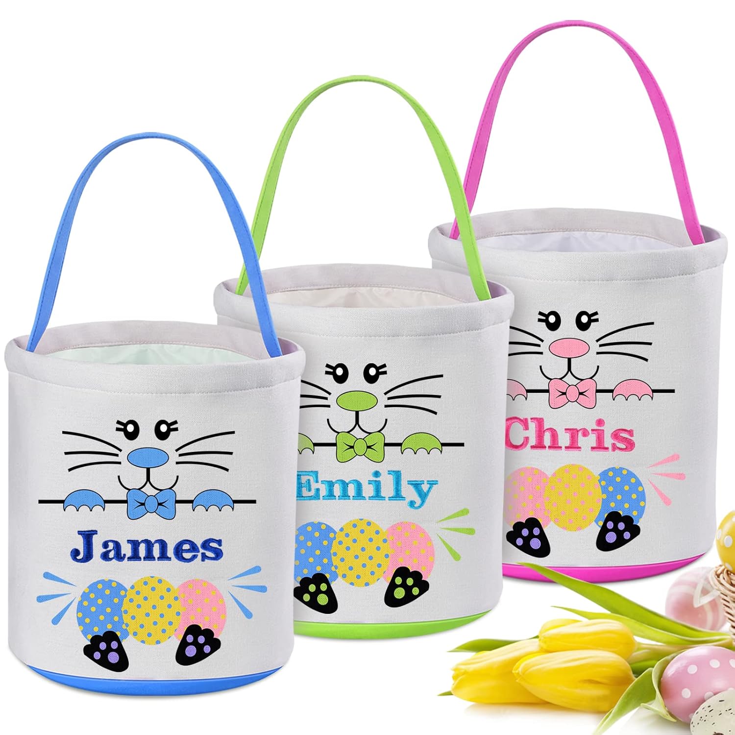 4 Pcs Personalized Easter Basket for Kids, VAPCUFF Easter Baskets for Boys Girls Easter Bunny Basket Easter Basket Bags Easter Gifts Baskets for Kids Easter Empty Basket Easter Egg Hunt Basket