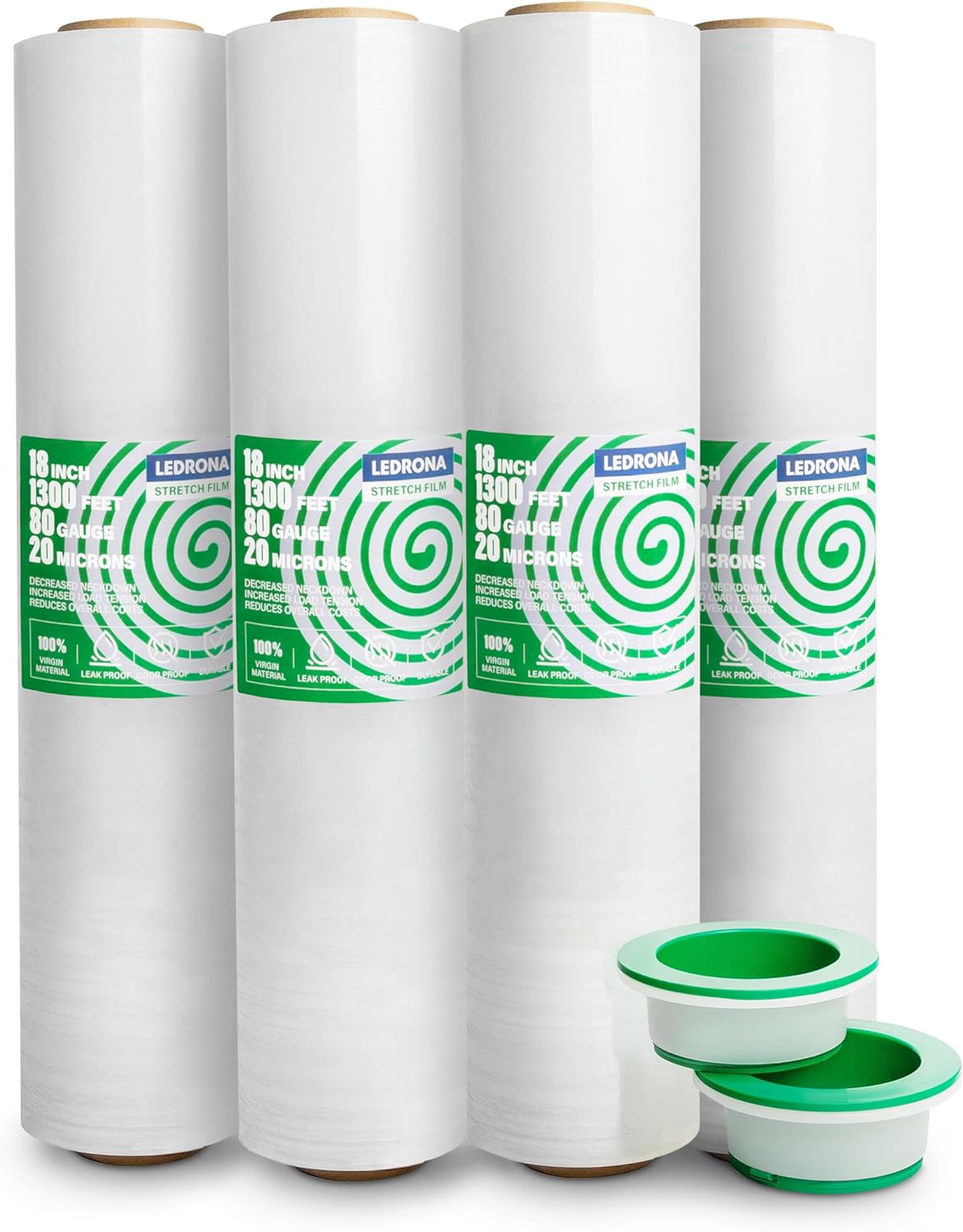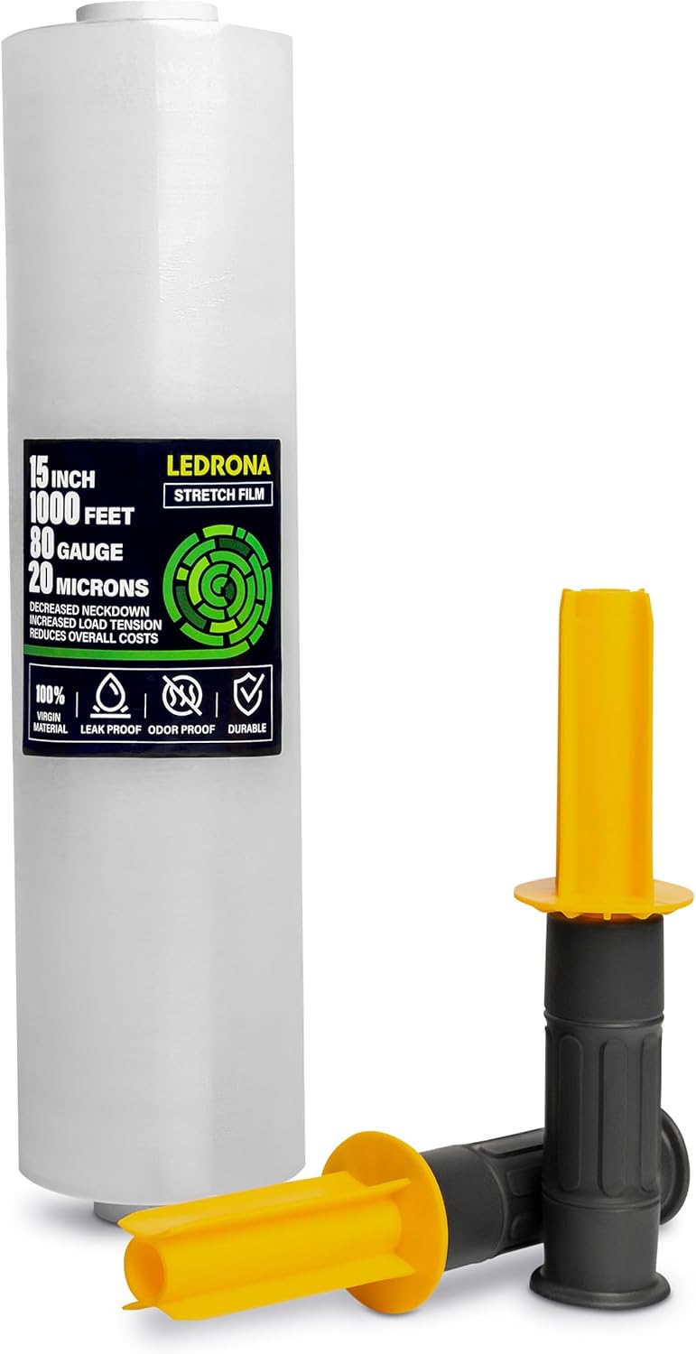 LEDRONA 4 Roll Stretch Wrap for Moving with Handles - 18in Wide, 1000ft Plastic Stretch Wrap Roll for Packing, Wrapping Furniture, Pallet, Luggage, Boxes - Clear Shrink Film - Moving Supplies