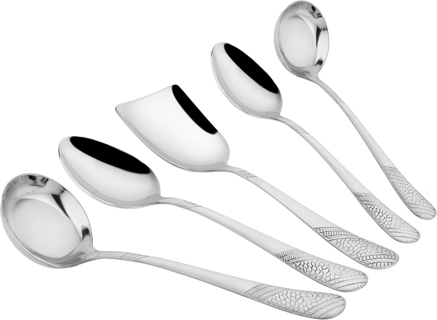 Are you looking to elevate your cooking game to the next level? Look no further! Our 5-piece cooking spoons set is designed to provide you with the perfect tools for all your culinary adventures. Each set includes 5 high-quality, durable cooking spoons crafted from premium food-grade materials that are safe to use with all types of cookware. With a variety of sizes and shapes, this versatile set of spoons is ideal for stirring, sauting, serving, and more. The long handles provide a comfortable grip, while the flat edges are perfect for scraping and flipping food. The spoons are also heat-resistant, making them ideal for use with hot foods and liquids. Featuring a sleek and modern design, this cooking spoons set will complement any kitchen decor. The spoons are easy to clean and dishwasher safe, making cleanup a breeze. Whether you're a seasoned chef or a beginner cook, our 5-piece cooking spoons set is a must-have addition to your kitchen arsenal. Buy now and enjoy cooking like a pro!