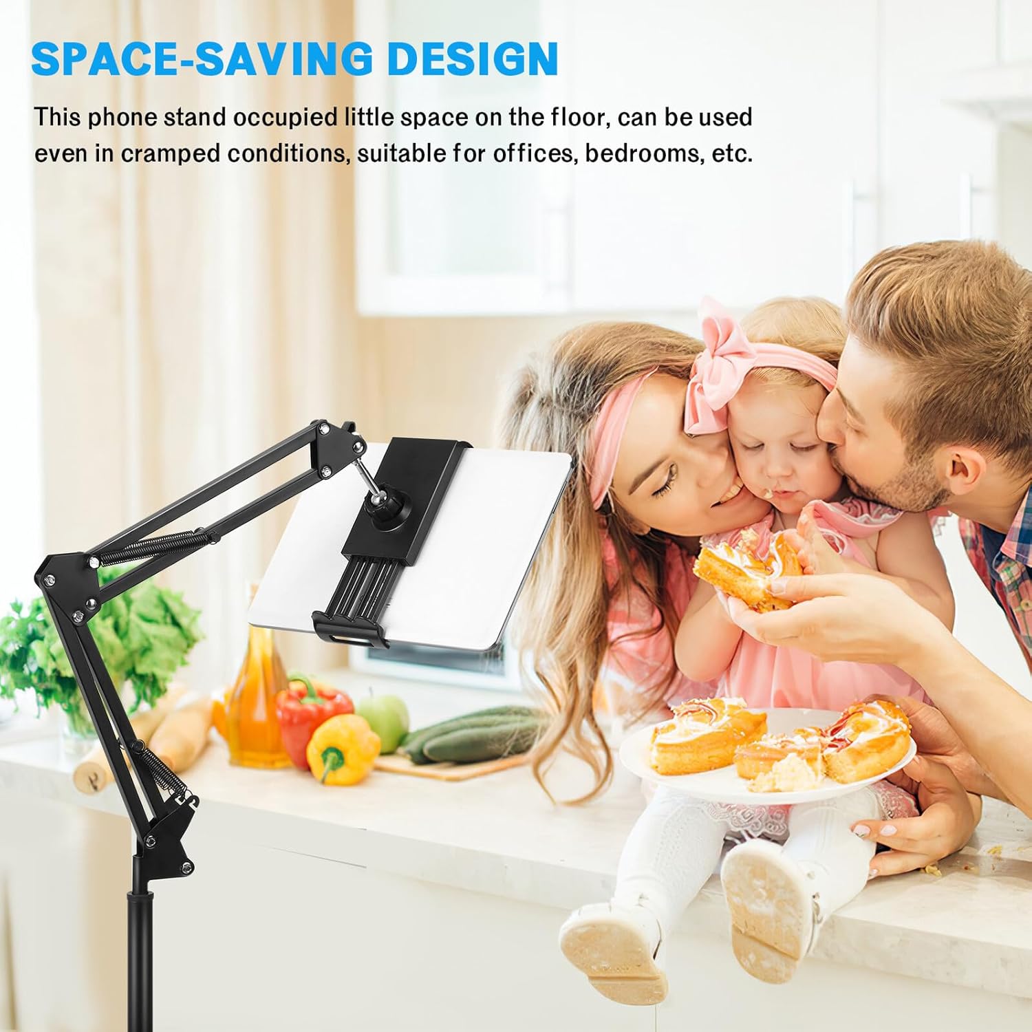 Package List 1 x phone stand Characteristics - Lasting performance: Made of premium metal material, the floor stand is sturdy and durable, not easy to deform after long-term use. -Material:Metal -Color:Black - Strong stability: The base of this floor stand is designed with added weight, providing better stability, avoiding phone shaking or tilting cell phone stand adjustable. - Space-saving design: This phone stand occupied little space on the floor, can be used even in cramped conditions, suitable for offices, bedrooms, etc phone holder. - Easy adjustment: The clamp and the pole is rotatable, and its mechanic arm supports 180 degree folding, meeting your various needs phone floor stand. - Multi-functional stand: This floor stand supports various phone or tablets models with its length-adjustable clamp on the top floor standing cell phone holder. -Product Info:Floor-standing mobile phone holder -Size:135.00X19.00X18.00cm/53.05X7.47X7.07inGoods Informationtablet floor stand This floor stand can be used for different tablets or mobile phones with its adjustable design.tablet stand for bed The floor stand will make your life easier.phone stand With the reinforced base, the floor stand have enhanced stability to prevent shaking or toppling over.adjustable phone stand The clip can hold your device securely without falling