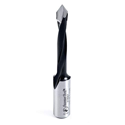 Industrial through-hole with V-point boring bits are coated with a non-stick coating for longer lasting cutting edge and tool life.Amana tool dowel drills are coated with a special polytetrafluoroethylene (PTFE), a non-stick color coating. In cases where the carbide tip cutting edges are coated, there is No need to sand the coating off before use. Once the tool starts drilling, The coating is cleared off the needed cutting edge right away, #314047, (B) Cutting height: 40mm, (D) diameter: 3/16, (D) shank: 10mm, Overall Length (L): 70mm, rotation: right hand314047 carbide Tipped through-hole boring bit r/H 3/16 dia x 70mm long x 10mm Shank