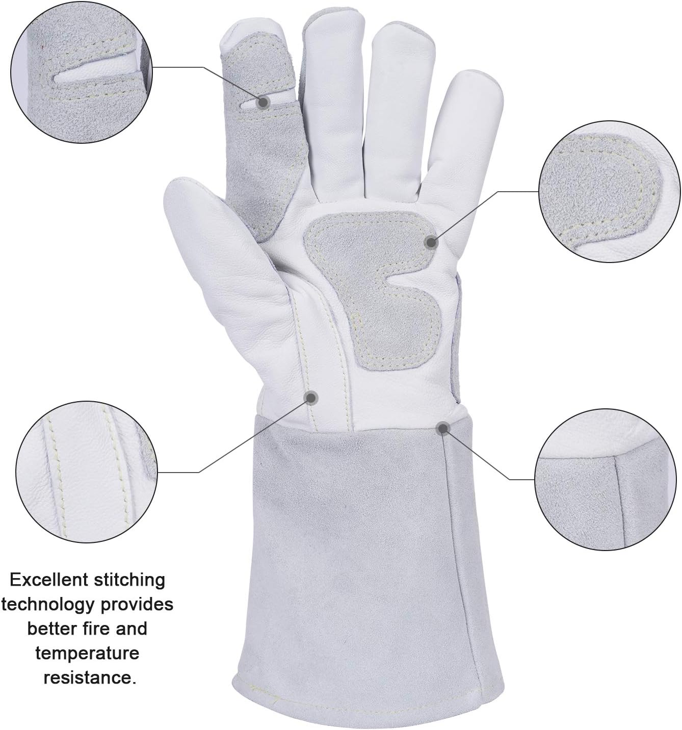 ANDELI Welding Helmet - Panoramic 180° View 4.53"X3.23",1/1/1/2 True Color Solar Powered Welder Hood,Wide Shade Welder Mask for TIG MIG ARC Cut and Grind,OPTIM-600LB-TGB & ANDELI 13.7in Welding Gloves,932°F TIG/Mig/Welding Gloves Heat/Fire Resistant, BBQ/Oven,Grill,Fireplace gloves with Extra Long Sleeve (White)