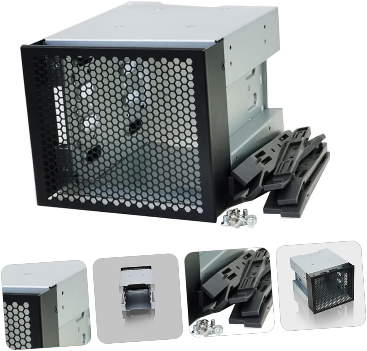 Package Include 1 x hard drive cage 1 x set of screws accessories 4 x pairs of hard drive rails Features -Size: 16.60X14.60X12.80cm/6.52X5.74X5.03in Hard Drive Cage -Material: aluminum alloy Hard Drive Accessories -Color: Silver Hard Drive Bracket - Fit nicely to the optical drive bay, accurately locating the site of case, hard drive and screw hole, easily expanding storage capacity 3.5 Inch Hard Drive Case. - Has heat dissipation and would not easily get deformed, protecting your hard disk Hard Drive Mounting Kit. - Expandable to 3-bay by additional unit on top and securing it Hard Disk Rack. - workmanship, reasonable structure, professional and practical, can bring you convenience Hard Disk Mounting Bracket. - It is in stable characteristics, high performance and it is in great reliability, simple, easy to install Hard Drive Tray.Goods DescriptionHard Drive Cage It is one of for you.Hard Disk Cage Are you looking for a professional, yet hard drive mounting bracket ? Are you in search of a sturdy, trustworthy tool that can do multiple jobs at once? , ! Our hard drive mounting bracket must meet your needs