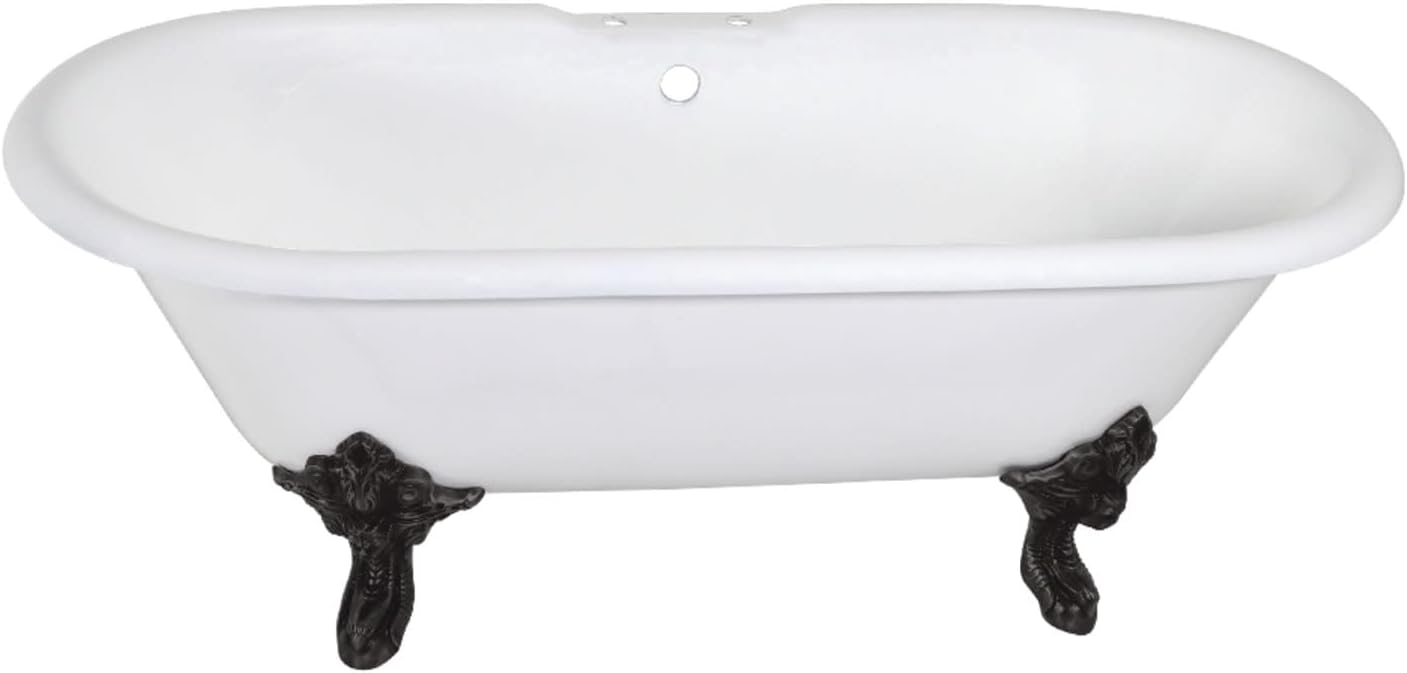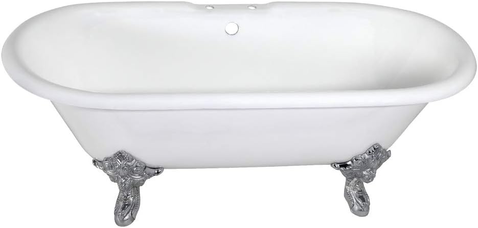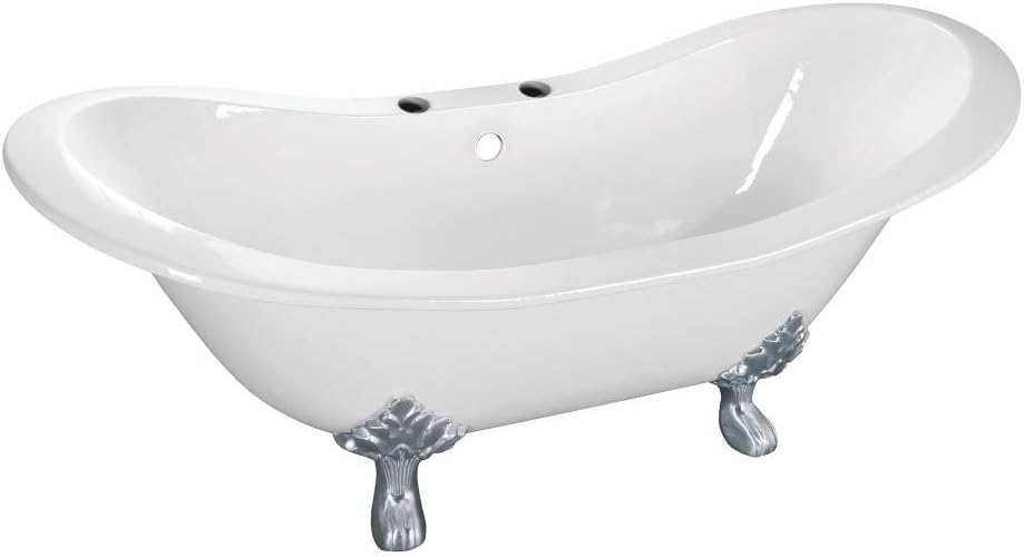 Surround yourself with the perfumed aroma of your favorite candle, grab your favorite piece of literature, and soak all of the stresses of the day away with the all-encompassing embrace of one of Kingston Brass' finest products, the clawfoot tub. Since the late 19th century, the claw foot tub has stood prominent among bathroom fixtures for its outstanding grandeur. The Kingston Brass Aqua Eden 72-inch cast iron double slipper clawfoot tub with 7-inch faucet drillings will wholly beautify your home for years to come thanks to its durable and heavy cast iron construction. Elegantly crafted clawfoot tub feet are included to further elevate your home's traditional eminence. Aside from its feet, this bathtub is enameled in glossy white for a classic look, exceptional durability, and easy care and maintenance for years to come.