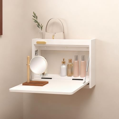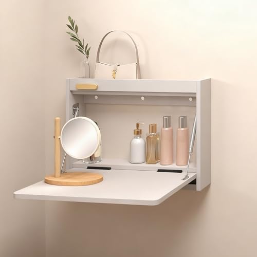 Our Floating Vanity Desk combines elegance with functionality, making it an ideal addition to any room in your home. Whether you’re enhancing your bedroom with a chic makeup station, improving organization in your dressing room, or adding a stylish touch to your living room, this versatile piece elevates your space while helping you maintain a tidy environment. This wall-mounted vanity desk is designed for various uses: - **In the Dressing Room:** It acts as a dedicated vanity, offering ample storage for cosmetics and jewelry while creating an open and spacious feel. - **In the Bedroom:** It can function as a bedside table, providing easy access to your essentials and keeping your nightstand clutter-free. - **In the Living Room:** With its sleek design, this desk serves as a decorative surface, perfect for light work or displaying personal items, blending practicality with aesthetic appeal. Crafted from solid wood, our wall-mounted vanity desk is not only durable but also adds a touch of sophistication to your decor. The installation is straightforward, and once assembled, it becomes a multifunctional staple for your living space. Upgrade your home with this stylish and practical wall-mounted dressing table that meets all your organizational needs while enhancing the beauty of your surroundings. Suitable for various locations, it’s the perfect solution for those looking to maximize space without sacrificing style.