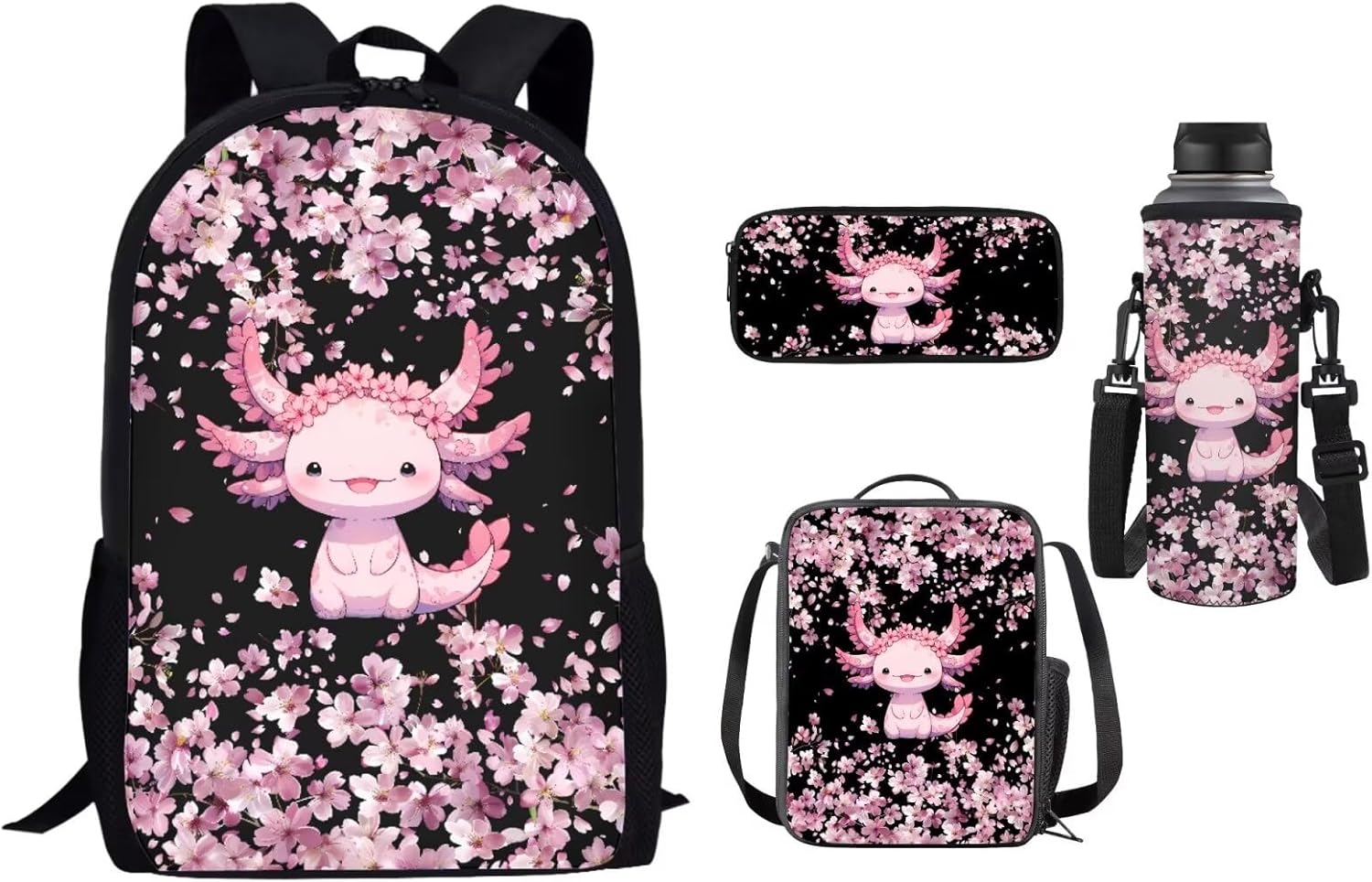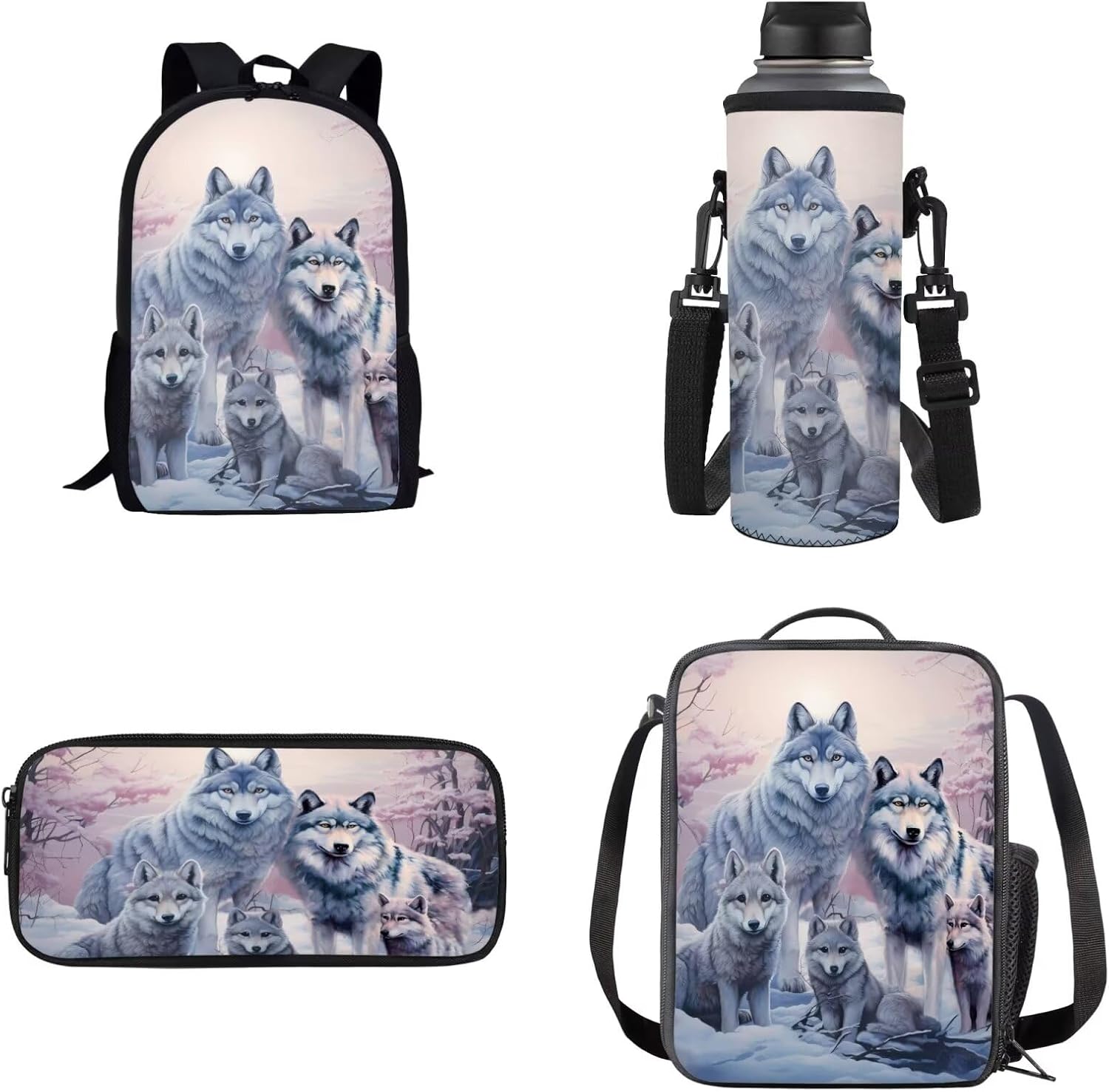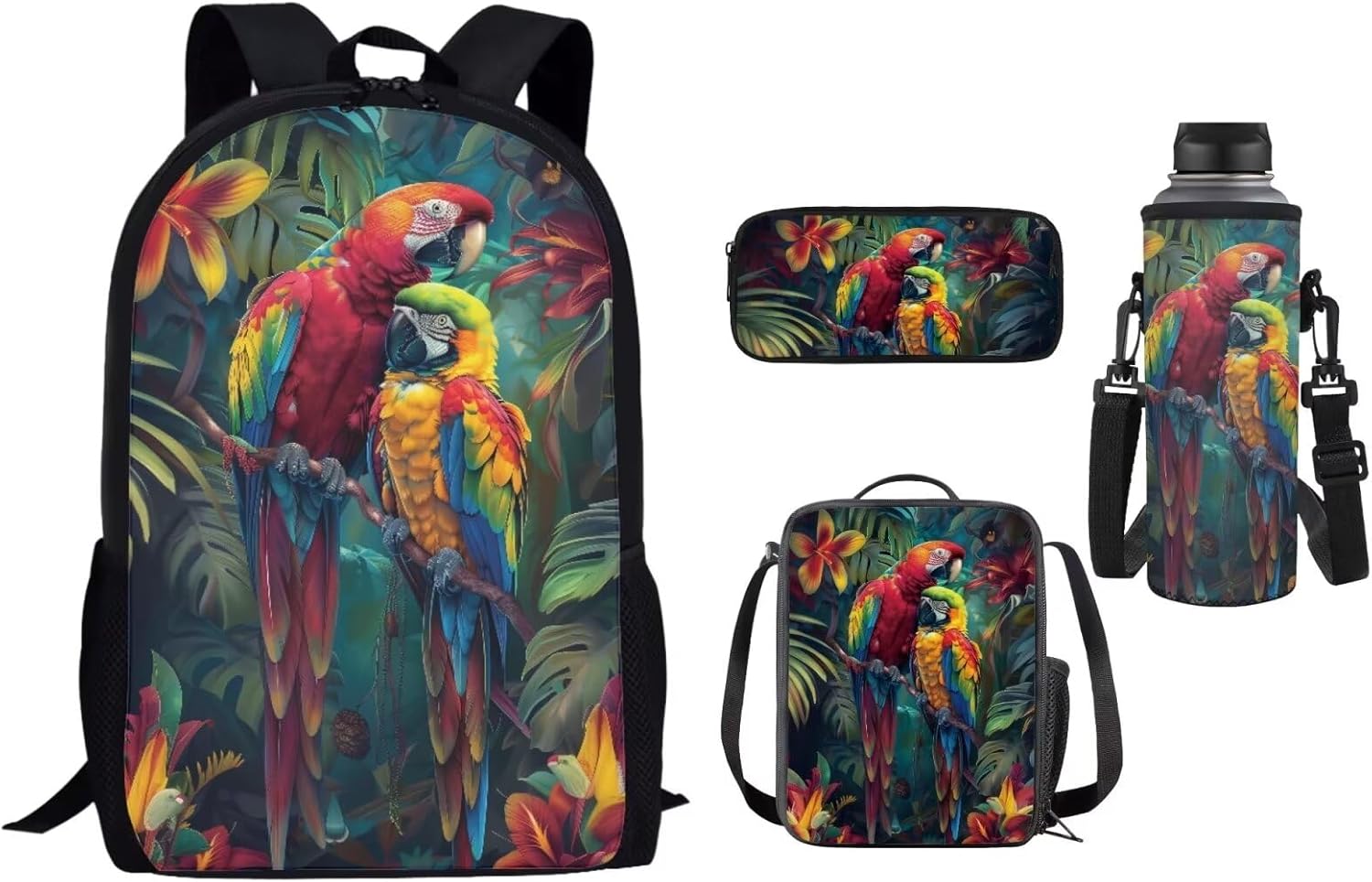 Lovely Kids School Backpack Set of 4 Durable Lightweight Backpack Features: -2 x side mesh pouch to carry umbrella or water bottle,1 x zipper pocket -Offers roomy zip main compartment to store A4 size textbooks, notebooks, folders or other belongings for school days. -Multipurpose Backpack: Be used as laptop backpack, travel backpack, student bookbag, school bagpack, shoulder backpack, daypack, rucksack. Lunch Bag: -A specially made insulated lunch bag designed to keep food cold or hot depending on your needs. -Store any kind of food and keep fresh for a long time. Pencil Case: -Solid bag design,only one pocket,simple and large space. -Suitable for both office & school use. Bottle Holder Carrier: -Bottle holder fits most 500ml bottles, like stainless steel and plastic bottles, sport and energy drinks -Insulator cover is leal for gym, walking, running, training, dancing, traveling, cycling, hiking, school, work, etc Purchasing Notes: -The actual color of the backpack maybe different from the picture shown due to the different screen of display or reflecting light when shooting. -1-2cm error of measuring is a reasonable range due to different measurement methods. Package Contents: 1 x Causal Backpack+ 1 x Insulated Lunch Bag+ 1 x Pencil Case + 1 x Water Bottle Holder