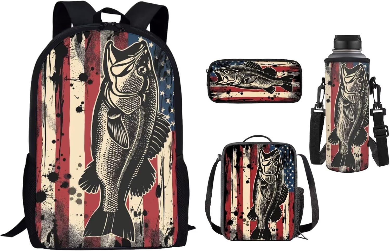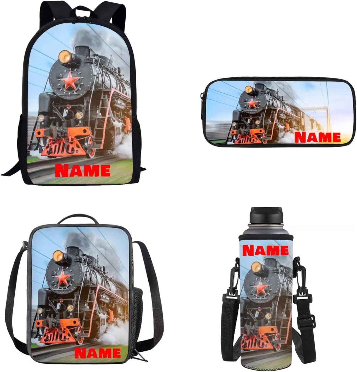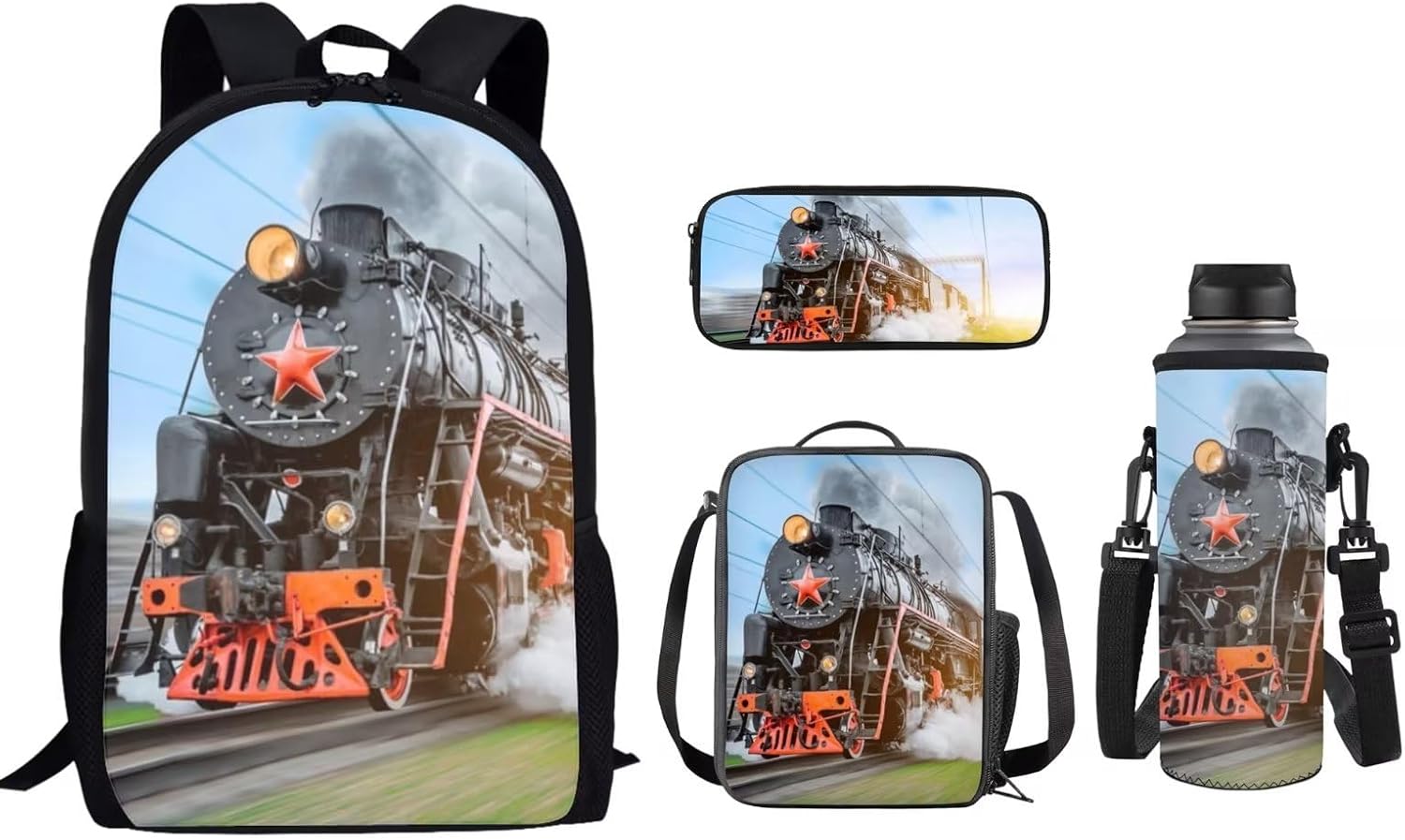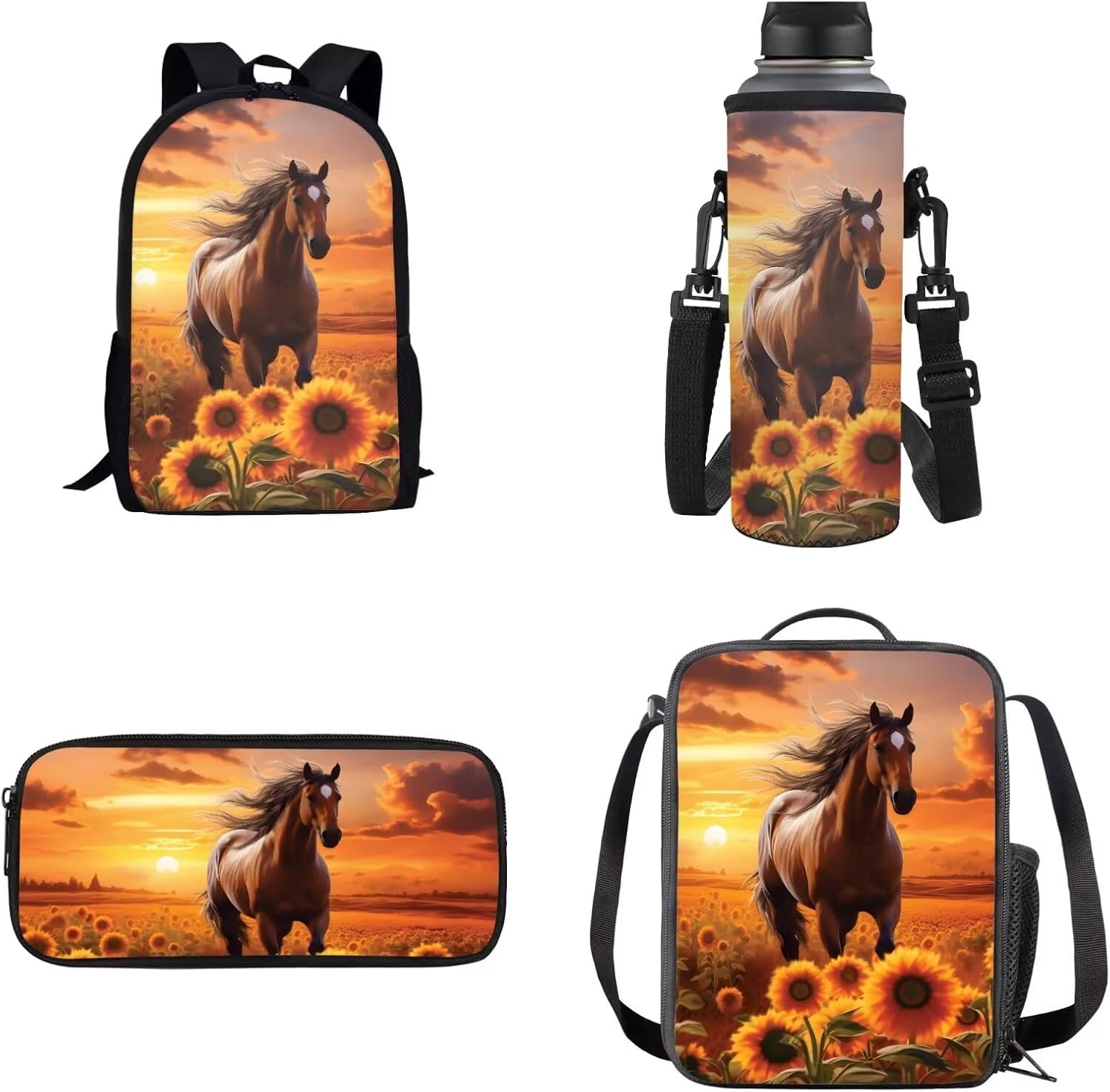 Lovely Kids School Backpack Set of 4 Durable Lightweight Backpack Features: -2 x side mesh pouch to carry umbrella or water bottle,1 x zipper pocket -Offers roomy zip main compartment to store A4 size textbooks, notebooks, folders or other belongings for school days. -Multipurpose Backpack: Be used as laptop backpack, travel backpack, student bookbag, school bagpack, shoulder backpack, daypack, rucksack. Lunch Bag: -A specially made insulated lunch bag designed to keep food cold or hot depending on your needs. -Store any kind of food and keep fresh for a long time. Pencil Case: -Solid bag design,only one pocket,simple and large space. -Suitable for both office & school use. Bottle Holder Carrier: -Bottle holder fits most 500ml bottles, like stainless steel and plastic bottles, sport and energy drinks -Insulator cover is leal for gym, walking, running, training, dancing, traveling, cycling, hiking, school, work, etc Purchasing Notes: -The actual color of the backpack maybe different from the picture shown due to the different screen of display or reflecting light when shooting. -1-2cm error of measuring is a reasonable range due to different measurement methods. Package Contents: 1 x Causal Backpack+ 1 x Insulated Lunch Bag+ 1 x Pencil Case + 1 x Water Bottle Holder