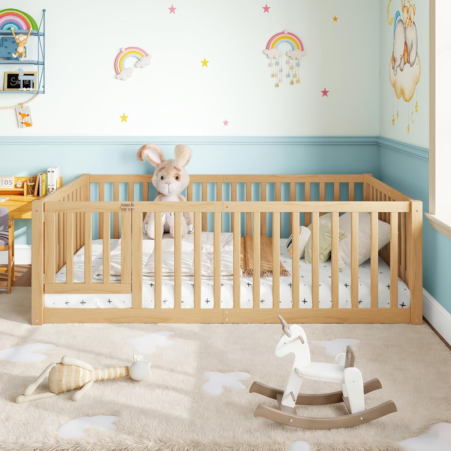 | Set Name | Twin Size Natural High Fence Montessori Floor Bed |