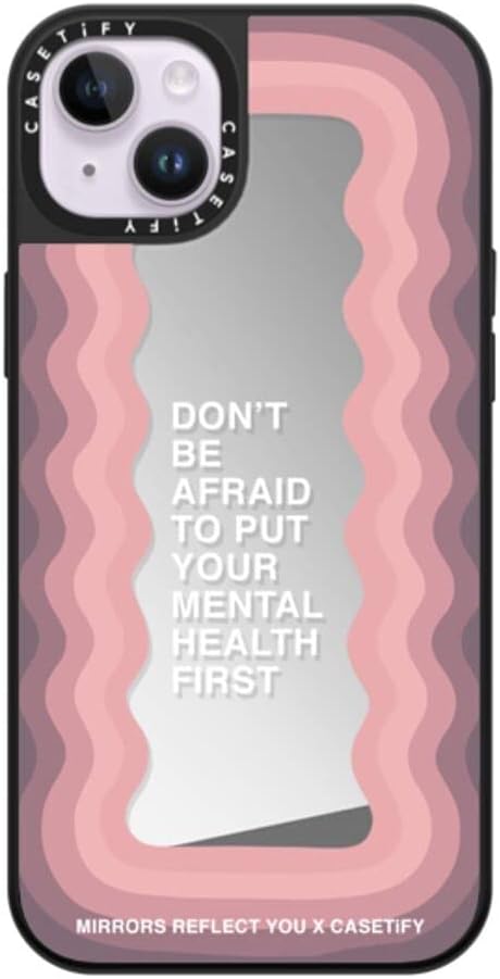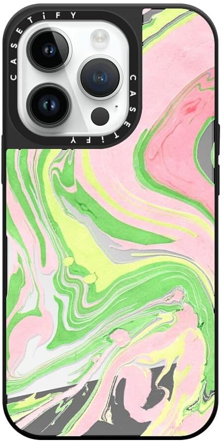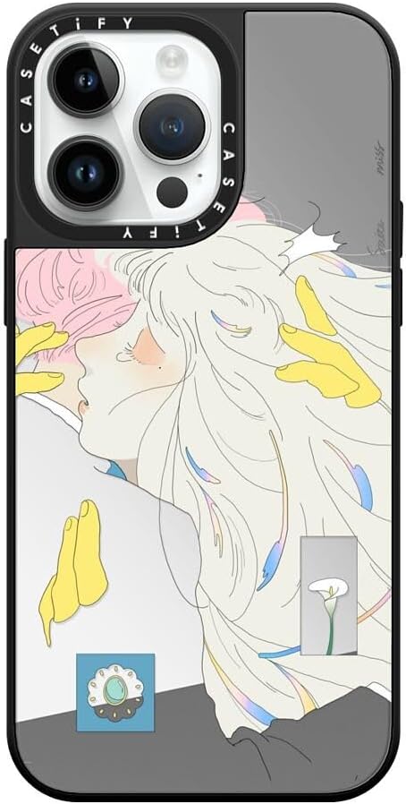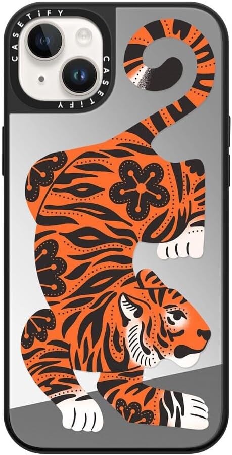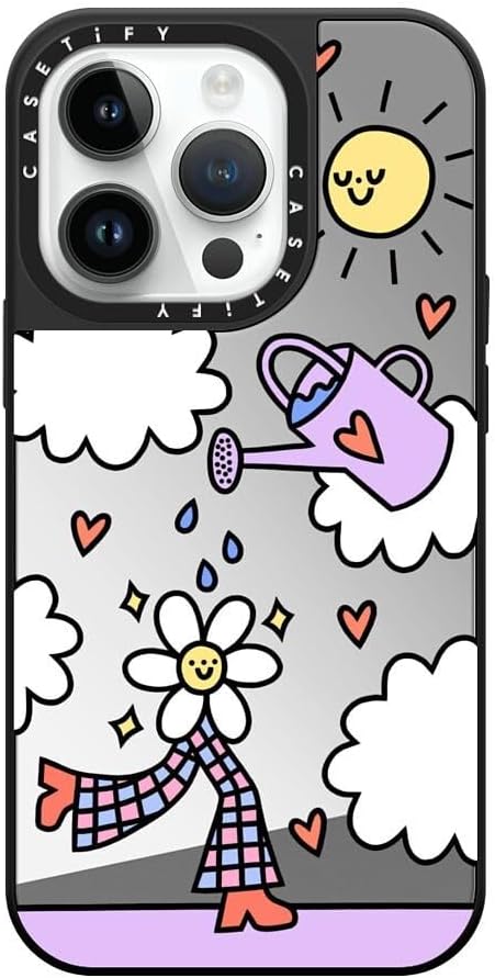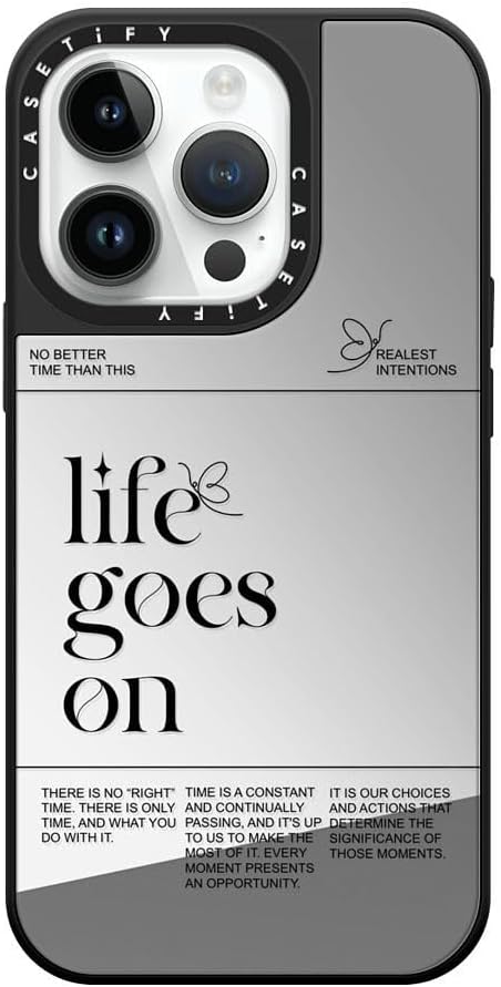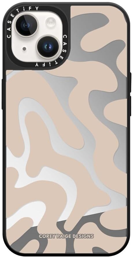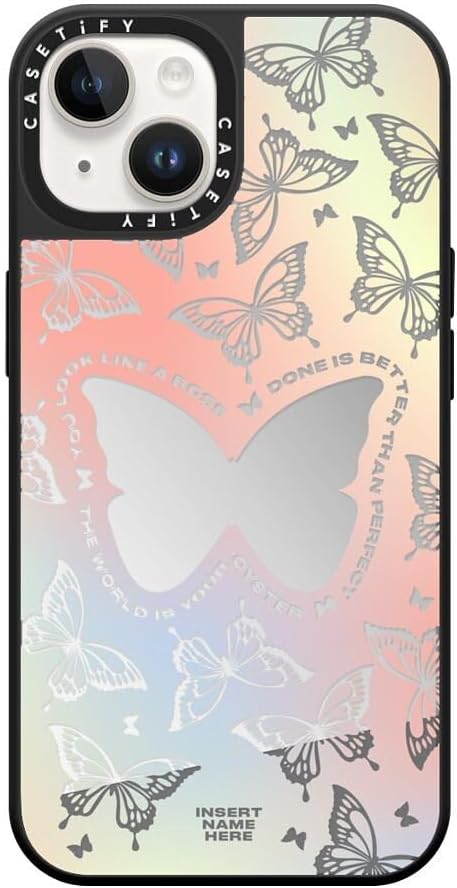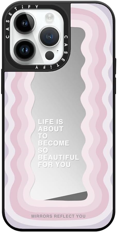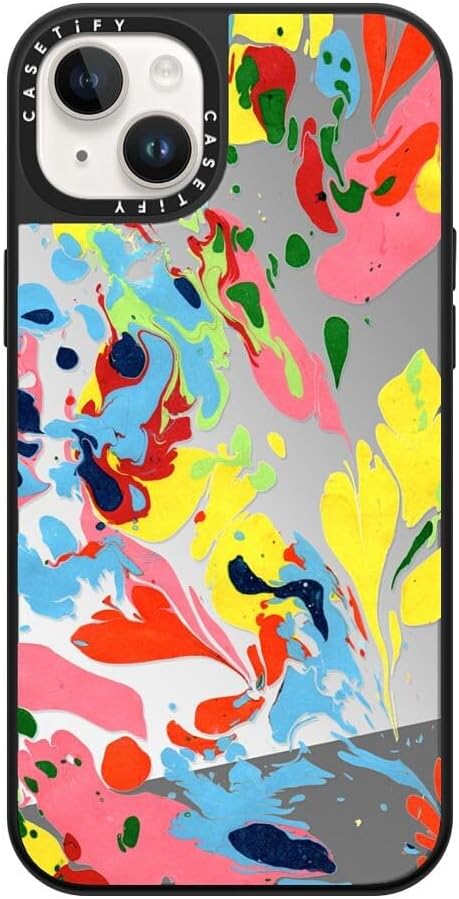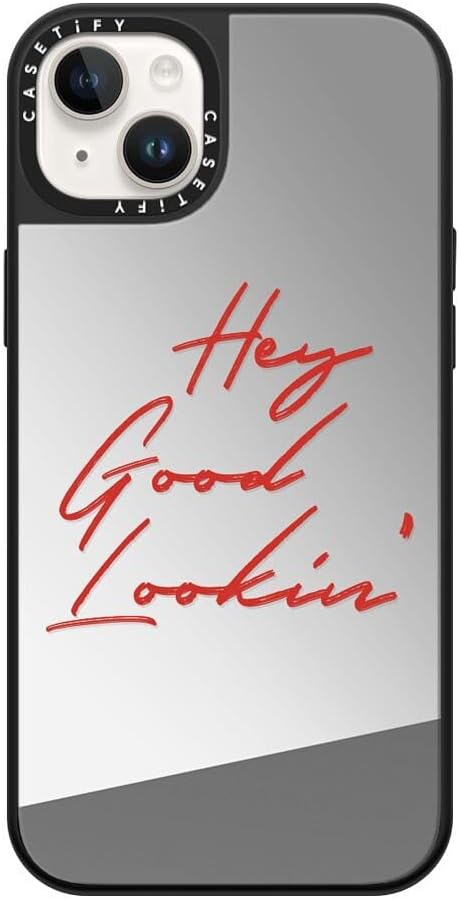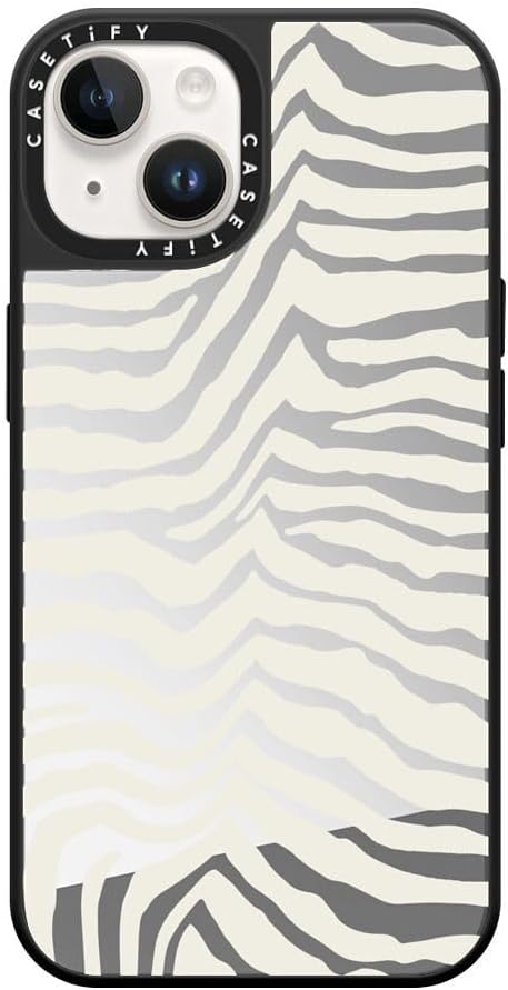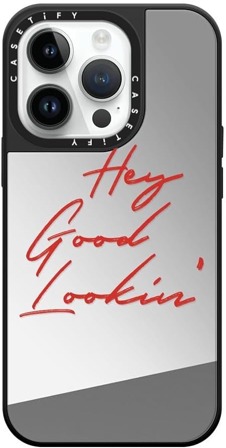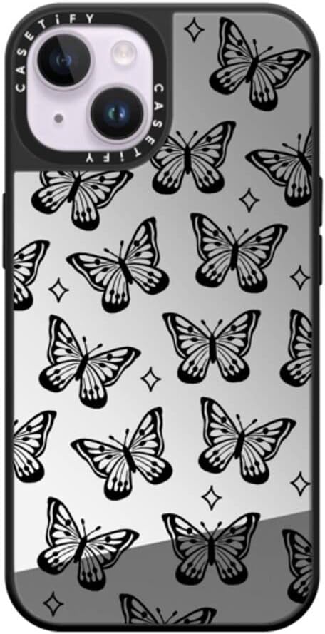 CASETiFY Mirror Case for iPhone 14 [Reflective / 4.9ft Drop Protection/Compatible with Magsafe] - Raspberry Beret - Silver on Black