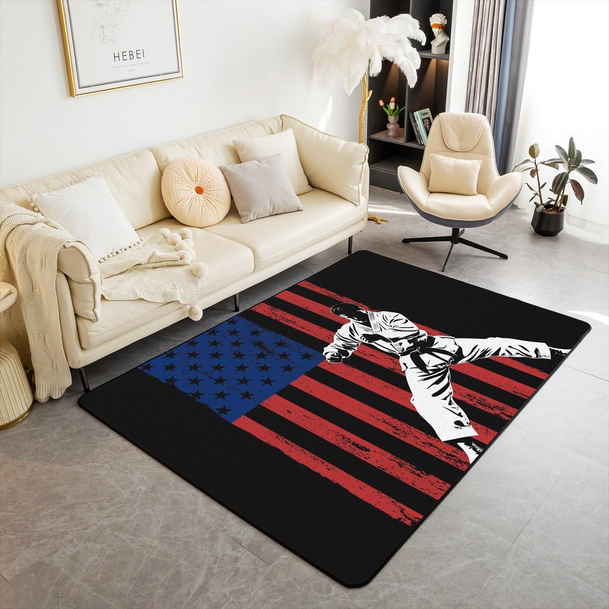 Tips: The carpet will arrive with temporary creases, you can repeat the process several times by rolling the carpet in the opposite direction of the creases and then spreading the carpet flat and pressing the edges of the roll with a heavy object to restore the carpet to its original state. We recommend using an iron to iron carpets at low temperatures more quickly Size: 2 sizes can be chosen of our rugs dimension: 3' x 5' x 0.39'' 100cm x 150cm x 1cm. 5' x 6'6'' x 0.39'' 150cm x 200cm x 1cm. Material: Made with 100% polypropylene. No chemicals used, No dye substance harming the health of you or your family. The rubber non slip design on the bottom of the area rug for bedroom is the safest protection. One piece is enough,you don't need to buy additional non slip carpet pads Machine washable: Soak in cold water for 10 minutes,then folded twice and put into the washing machine on gentle cycle, and then dry in the air.Do not use chlorine or bleach Features: With many different patterns to choose from, you will easily find rugs to coordinate with your decor. Our rug is widely used as the floor rug as well as a play mat, kitchen rug, bedroom rug, laundry mat, living room mat, office rug etc. Notes: Due to the light and screen setting difference, the item's color may be slightly different from the pictures Please allow slight dimension difference due to different manual measurement