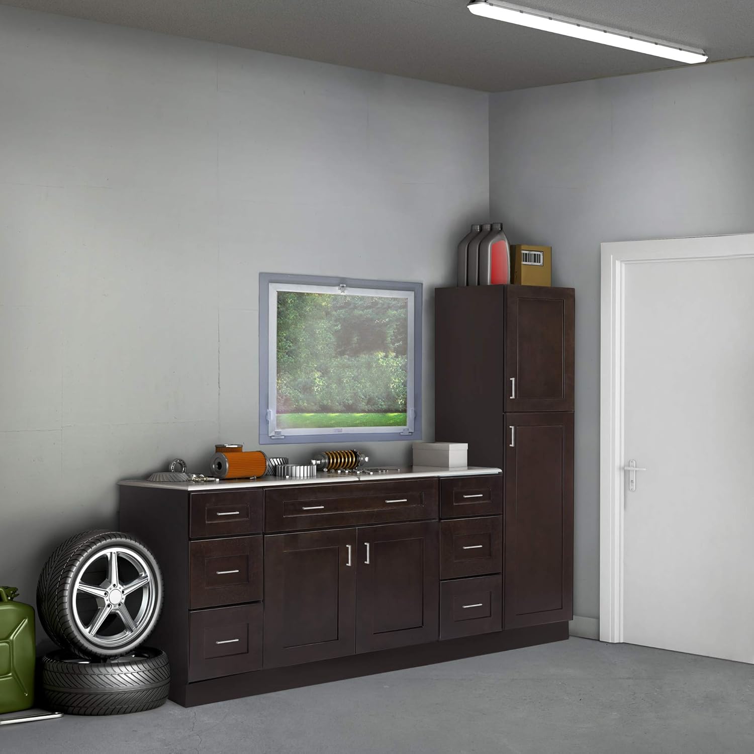 Transform your space with the Design House Brookings Kitchen Base Cabinet (B24). Crafted with a solid wood face and door frame, and durable 1/2-inch plywood sides, this cabinet offers exceptional strength and longevity. The Shaker-style cabinet features 2 doors, 1 drawer, and 1 adjustable shelf with anti-slip shelf pins, perfect for a variety of rooms including kitchens, garages, and laundry. With 6-way adjustable soft-close hinges, your doors will close quietly and align perfectly. Finished interiors and base trim provide a polished look, while easy-to-clean surfaces maintain their beauty with just mild soap and water. This cabinet arrives securely packaged and ready to assemble with all necessary hardware. Manufactured by Design House, the trusted source for quality lighting, hardware, plumbing, kitchen, and bath products for every taste and budget.
