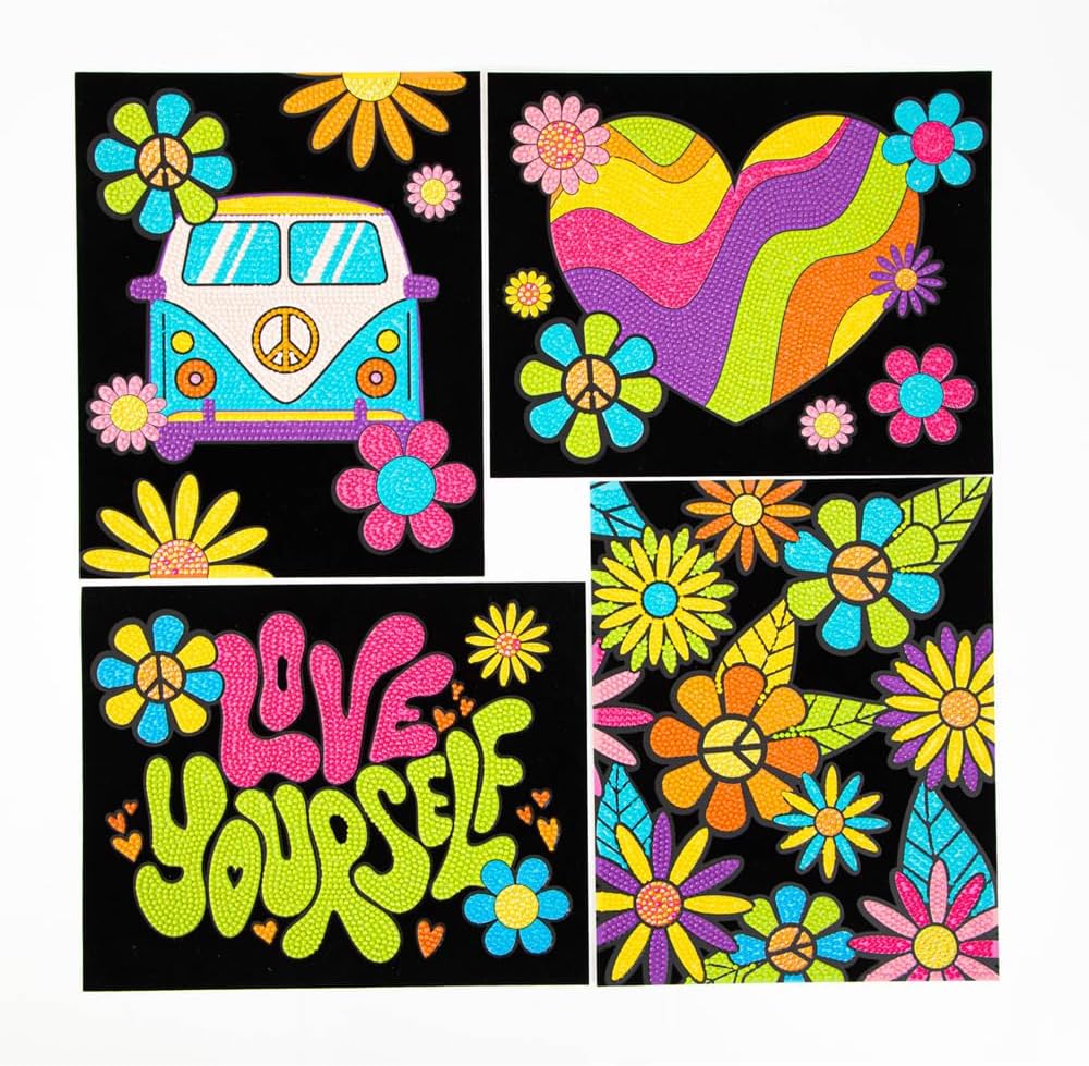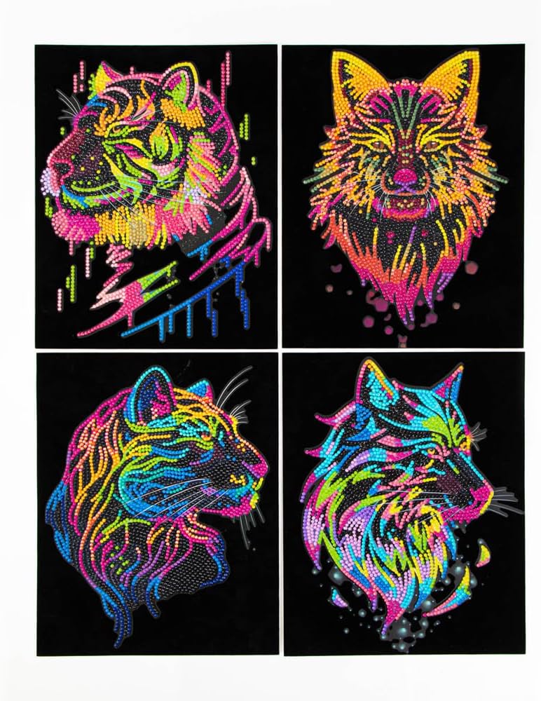 Enjoy four times the fun with the Diamond Dotz Neon Flock Mandalas Diamond Painting Kit. This set includes four dazzling mini designs - a heart, butterfly, dragonfly, and layered mandala - each brought to life in vibrant neon tones. With each motif placed on a soft black flocked canvas, the contrast makes every Dotz shimmer with brilliance. Perfect for beginners or anyone looking for quick, satisfying projects, these small colorful diamond paintings are both relaxing and rewarding. Each Diamond Art Kit includes all tools - stylus, wax, tray, and pre-sorted gems - so you can complete your projects with ease and confidence. Whether you’re creating your first neon diamond art or want a fun, fast series of designs to brighten up your craft corner, this kit delivers. It’s a cheerful addition to the Diamond Painting Kits for Adults lineup and a great way to explore your love of symmetry and sparkle.
