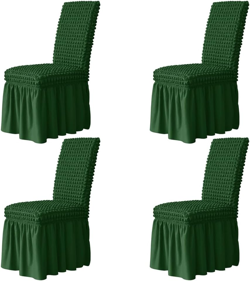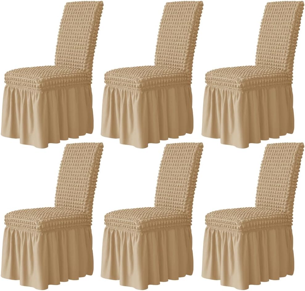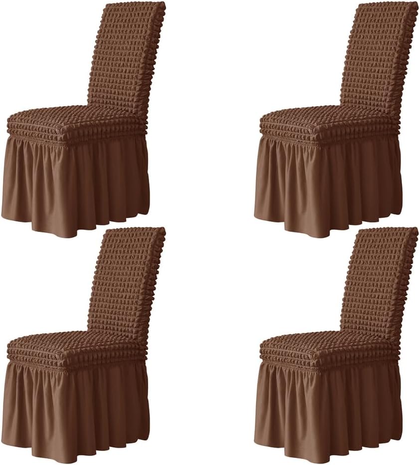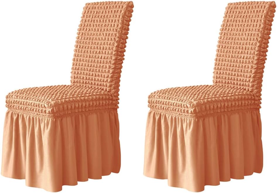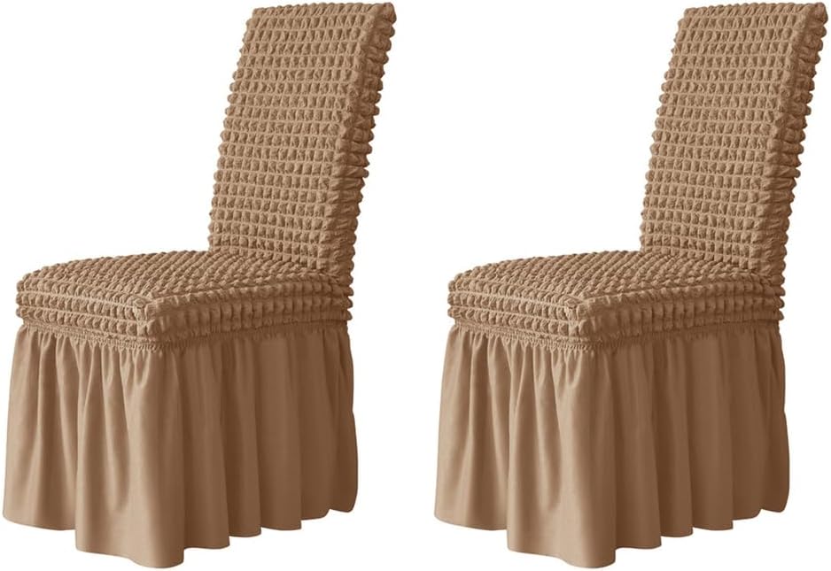 Features:- The flounce design can easily cover the solid legs of the stool, giving you a different elegant appearance of the chair cover.- Protect your chair from daily wear and stains, and always keep it clean and fresh.- The elastic band is designed to fit every connection, perfectly cover the chair, and is not easy to slide or shift.- Easy to disassemble and clean, machine washable (cold water), not ironed or bleached, low temperature drying.CHAIR COVER SIZEBack height: 47-75cmBack width: 38-48 cmSeat width: 38-48 cmSeat depth: 38-48 cmSeat thickness: 4-14cmPlease check the size of your chair before orderingName: Parsons Chair CoversStyle:ModernPattern:SolidCrafts: reactive printing and dyeingSpecial Feature: Removable, Stretch, Soft, ,Washable,Stretch FitClosure Type: Elastic bandMaterial: polyester + spandexColor: Beige, light brown, gray, dark brown, red, black, blue, dark gray, sky blue, pink, khaki, dark green, orangeWeight: about 320g (1 piece)Suitable for: all seasonsPackage includes: 2/4/6 x chair cover (excluding chairs)Please Attention- Due to different light and screen, the color of the item may be slightly different from the image.- Due to manual measurement, please leave a distance of 1-3 cm. Please understand us, thank you very much.