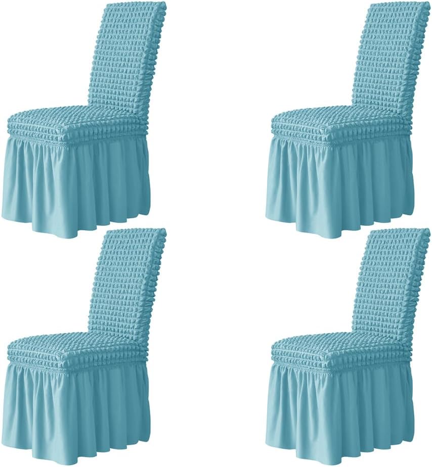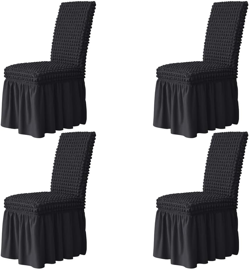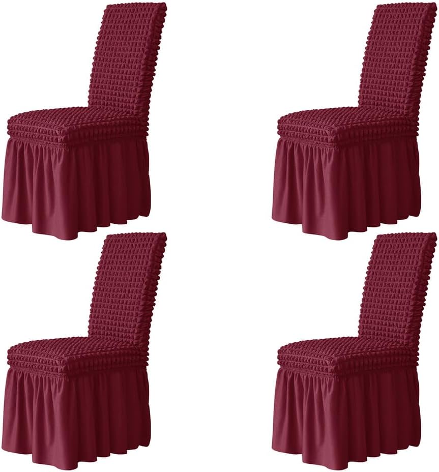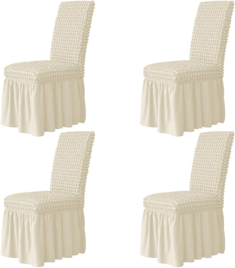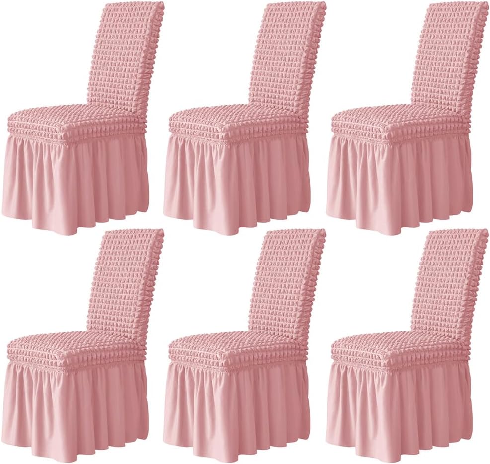 Features:- The flounce design can easily cover the solid legs of the stool, giving you a different elegant appearance of the chair cover.- Protect your chair from daily wear and stains, and always keep it clean and fresh.- The elastic band is designed to fit every connection, perfectly cover the chair, and is not easy to slide or shift.- Easy to disassemble and clean, machine washable (cold water), not ironed or bleached, low temperature drying.CHAIR COVER SIZEBack height: 47-75cmBack width: 38-48 cmSeat width: 38-48 cmSeat depth: 38-48 cmSeat thickness: 4-14cmPlease check the size of your chair before orderingName: Parsons Chair CoversStyle:ModernPattern:SolidCrafts: reactive printing and dyeingSpecial Feature: Removable, Stretch, Soft, ,Washable,Stretch FitClosure Type: Elastic bandMaterial: polyester + spandexColor: Beige, light brown, gray, dark brown, red, black, blue, dark gray, sky blue, pink, khaki, dark green, orangeWeight: about 320g (1 piece)Suitable for: all seasonsPackage includes: 2/4/6 x chair cover (excluding chairs)Please Attention- Due to different light and screen, the color of the item may be slightly different from the image.- Due to manual measurement, please leave a distance of 1-3 cm. Please understand us, thank you very much.