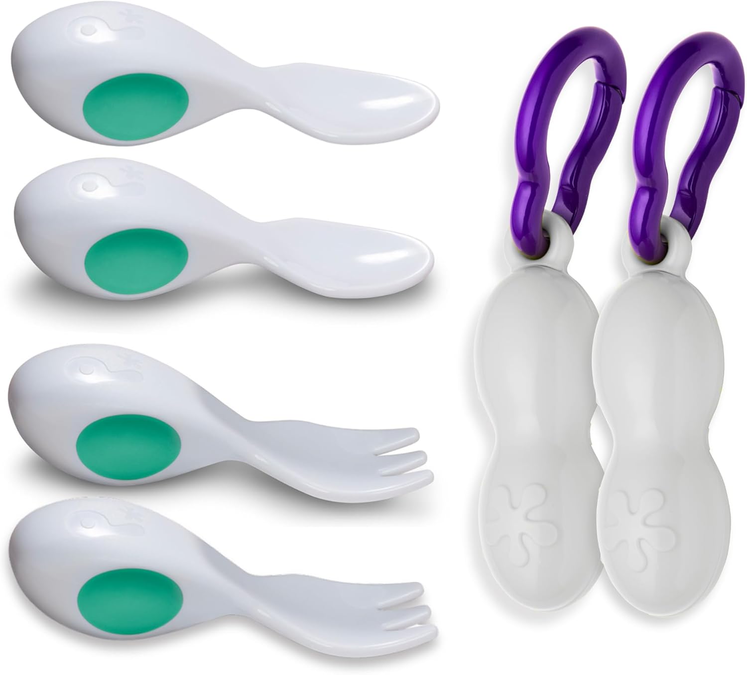 The doddl baby spoon and fork set have cleverly engineered handles for easy grip, making it simple for your child to begin to use baby cutlery. This baby fork and spoon set for babies has short and compact handles with comfortable ends to make gripping easy and eliminate the gag risk of long-handled baby cutlery. The bright areas are soft-to-touch, encouraging grip development. This baby feeding essentials set is microwave-, steriliser- and dishwasher-safe. It’s made from high-quality plastic and is BPA- and phthalate-free. This baby spoon and fork set can be held by your baby in their first ‘palmar’ grasp with soft-touch areas that encourage the development of the ‘pincer’ grip, an advanced motor skill. doddl has been awarded The King’s Award for Enterprise - Innovation 2023. doddl baby self feeding spoon and other baby items help young children learn to eat independently, quickly, intuitively, correctly and magically. We’re here to give your child the confidence to believe they can do anything, starting with learning to feed themselves.