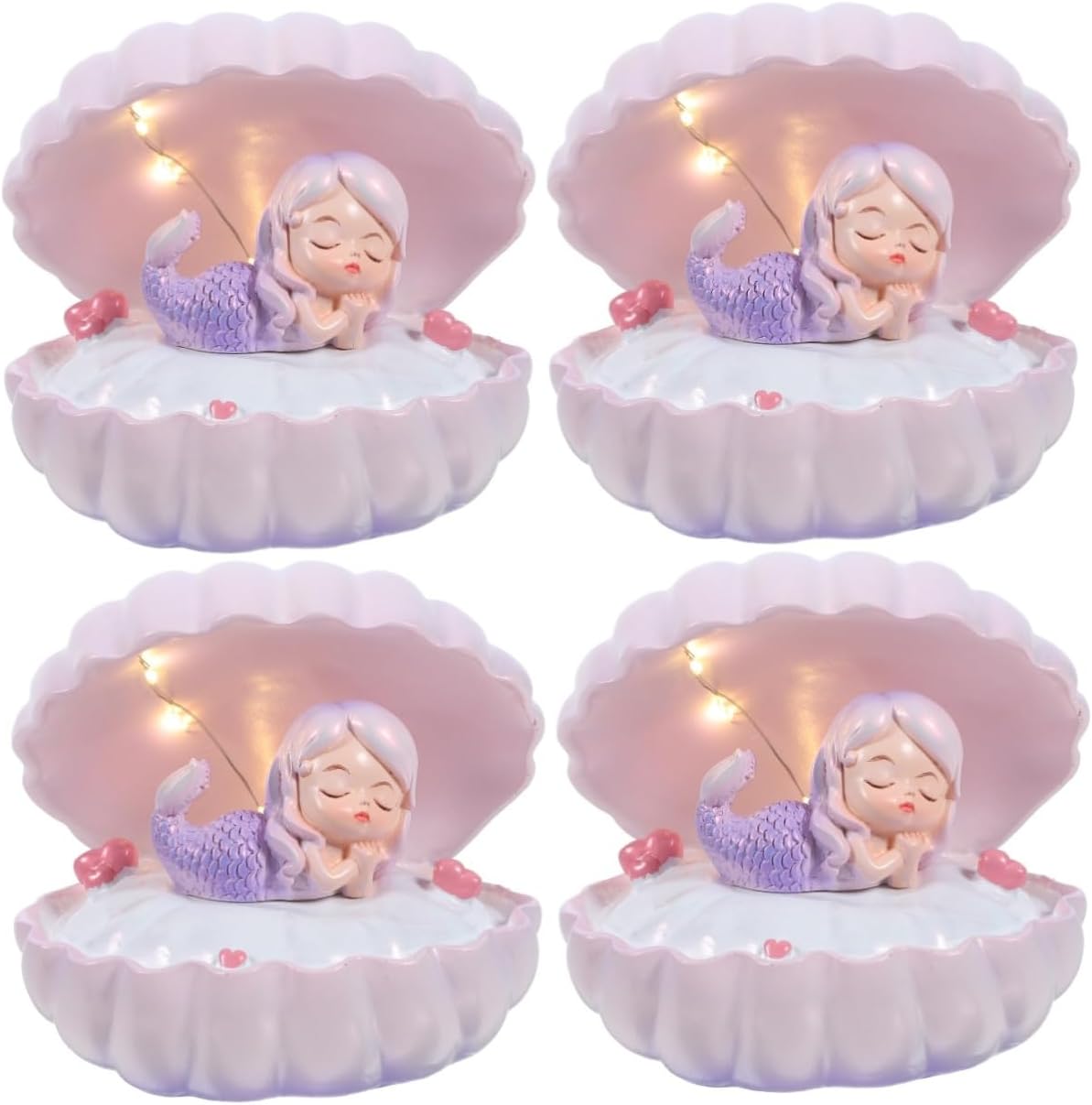DOITOOL 3sets Mermaid Shell Night Lamp Creative Table Light for Bedroom Girls Nightlight Cozy Atmosphere Decor for Boys and Girls Rooms and Play Spaces