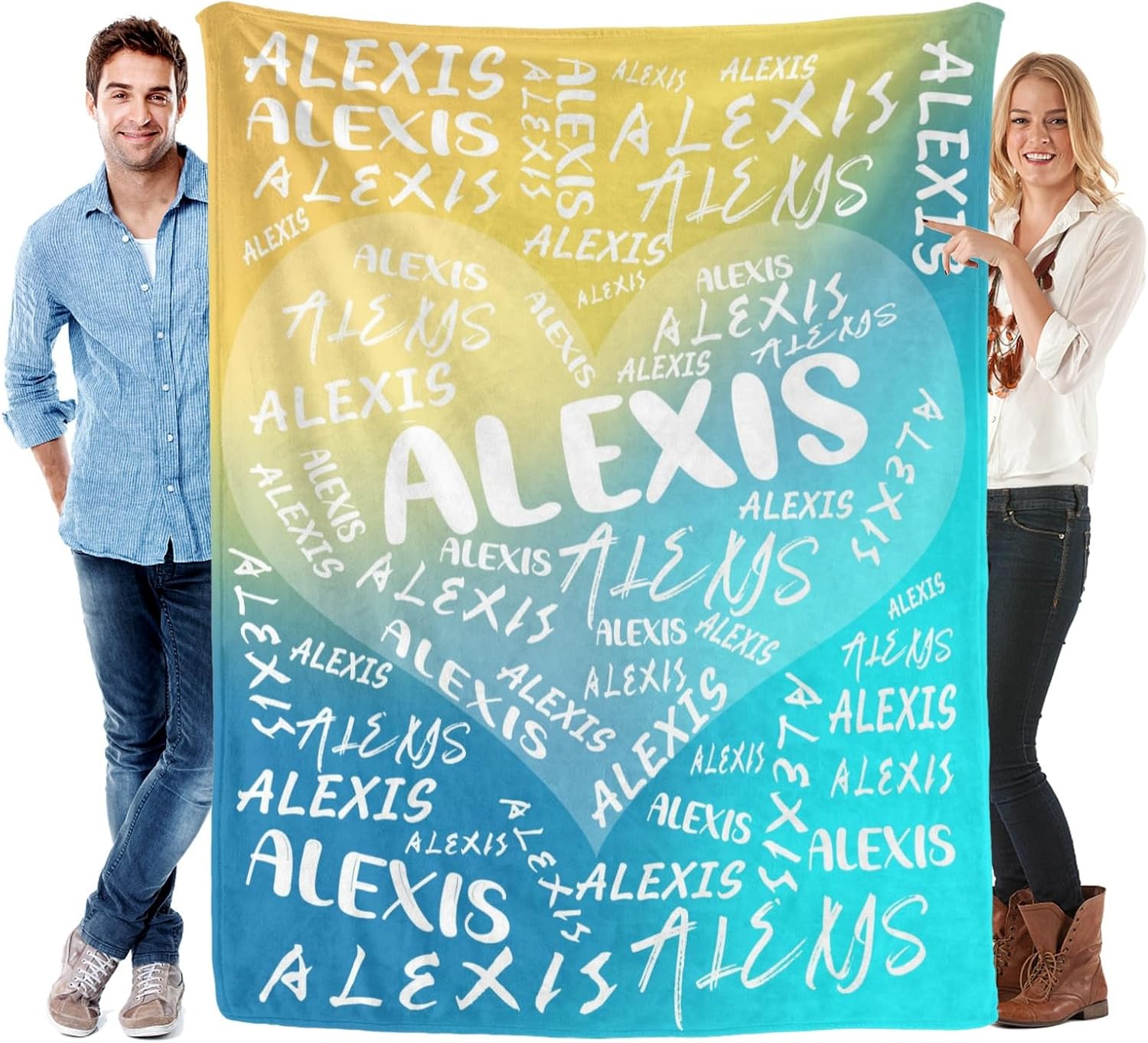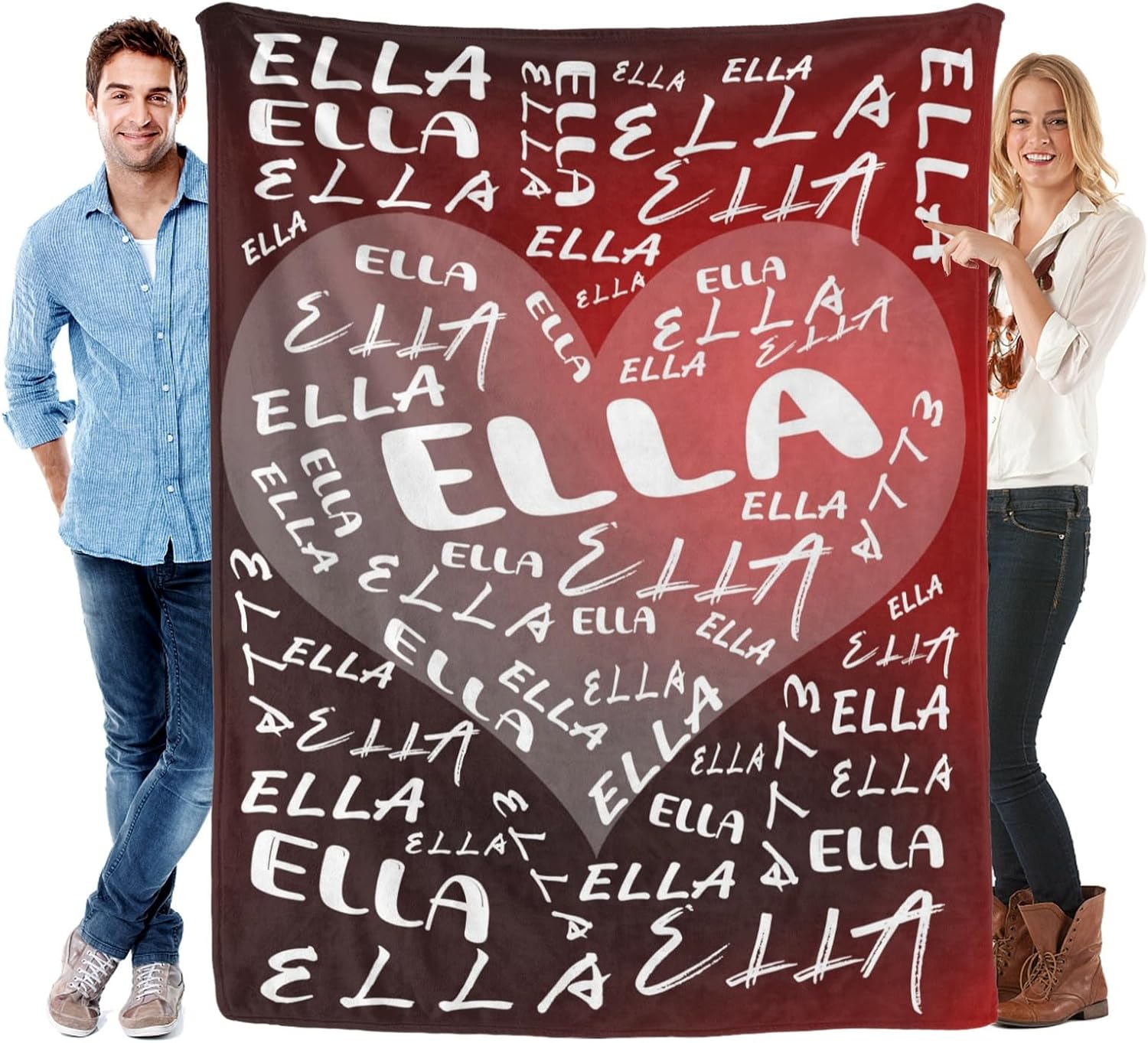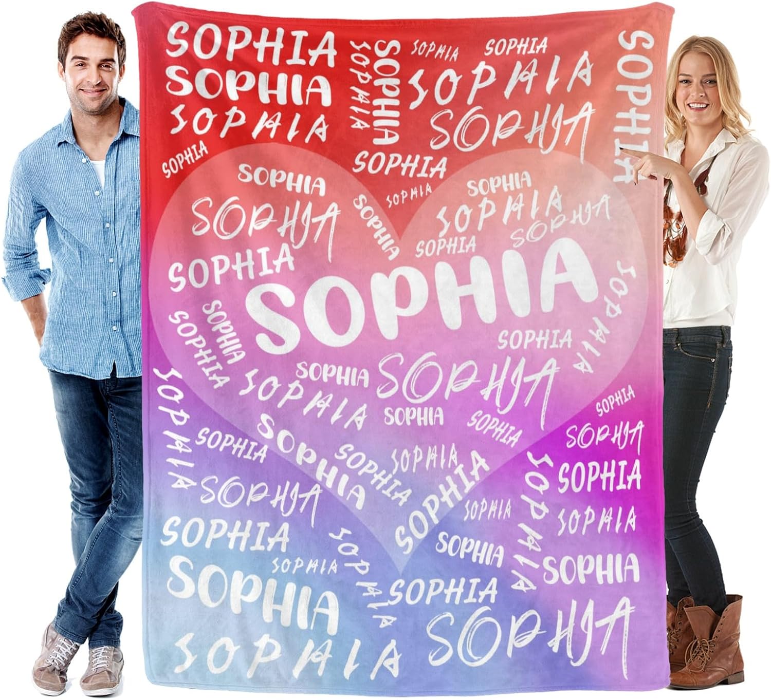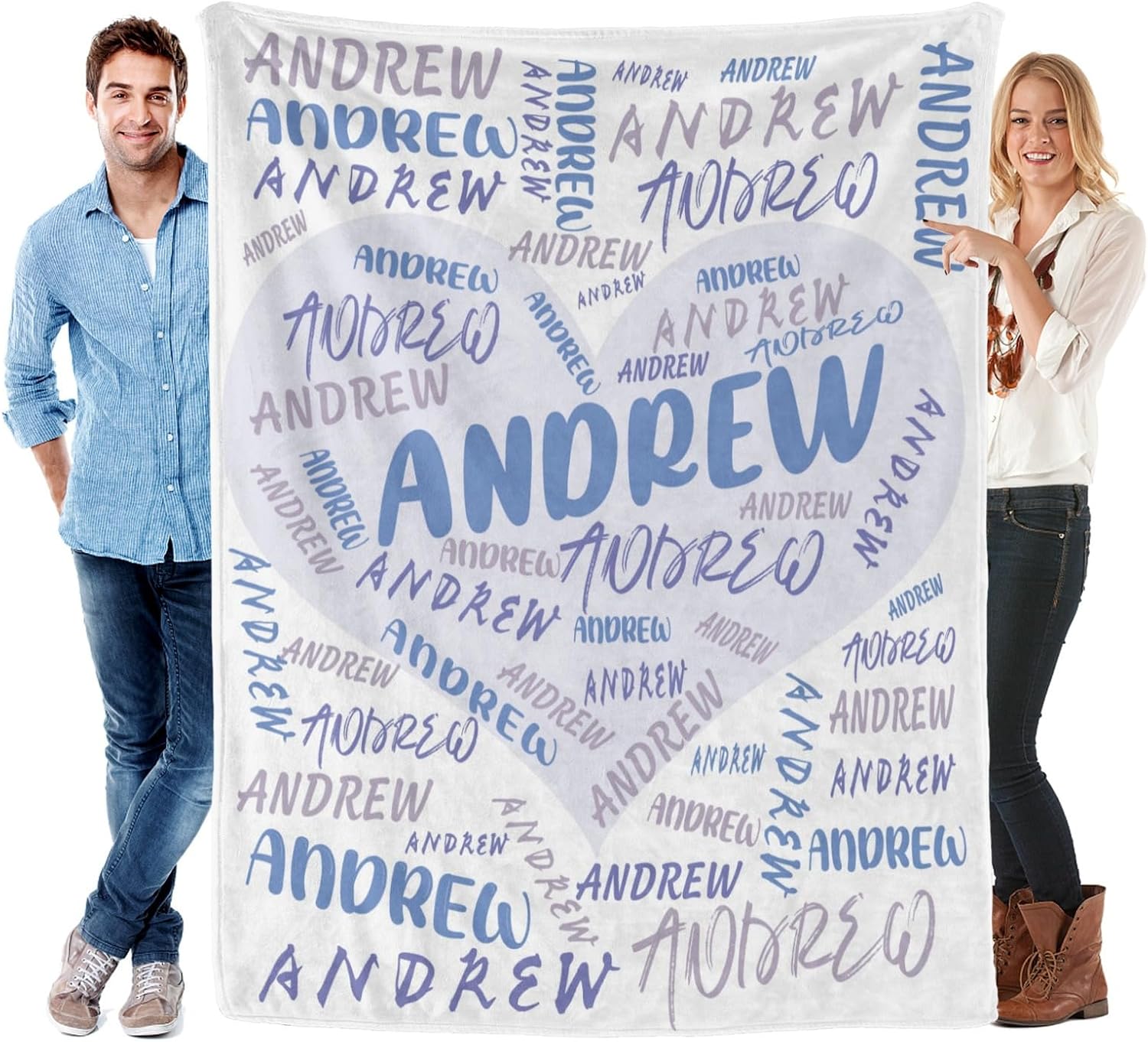 Features: 1.Design your own special fluffy plush ultra-soft micro flannel throw blankets with name or text you want. 2. Made of high quality anti-pilling flannel, which is soft touch, pilling resistance, wrinkle resistance, durable and comfortable, have a good touch and friendly to your skin, your kids, your family. 3. Suitable for all seasons, perfect for bed, sofa, camping, cold movie theater or traveling. 4. Easy to Care: Machine washable or hand washable, tumble dry at low temperature, holds several machine wash and dry beautifully. 5. No matter what name you provide, we will print them well on your personalized blanket, which will be the most unique gifts or souvenirs on various holiday, anniversaries. 6.Perfect gifts for Birthday, Christmas, Wedding, Anniversary Valentine's Day. How to Customize: This product is designed with the tools that you can create a very exclusive gift. 1.Choose the size and color you want 2. Click "