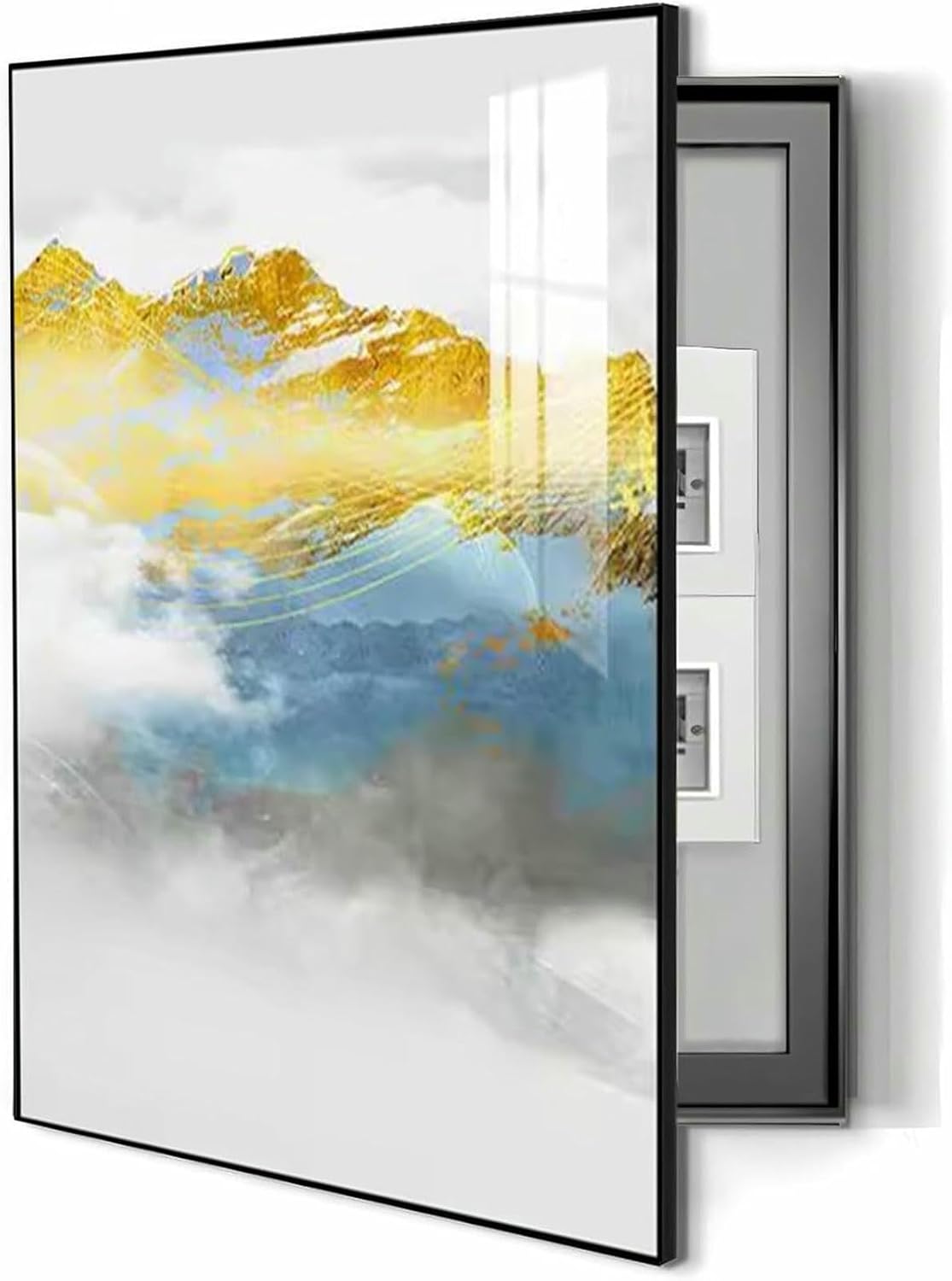 Note: Please measure the size of your electrical panel before purchasing. The size should not exceed the size of the coverage area, and the thickness can be covered by 1.4in.- Basic parameters:* Name: Electrical panel cover/instrument cover decoration* Frame: PS material* Style: Flip-on* Border: black* Specifications: Width x Height- size:Frame size: 40 x 50 cm/15.7inx19.6in, can cover electrical panel size: 33 x 43 cm/12.9inx16.9inFrame size: 45 x 55 cm/17.7inx21.6in, can cover electrical panel size: 38 x 48 cm/14.9inx18.8inFrame size: 40 x 60 cm/15.7inx23.6in, can cover electrical panel size: 33 x 53 cm/12.9inx20.8inFrame size: 50 x 60 cm/19.6inx23.6in, can cover electrical panel size: 43 x 53 cm/16.9inx20.8inFrame size: 50 x 70 cm/19.6inx27.5in, can cover electrical panel size: 43 x 63 cm/16.9inx24.8inFrame size: 60 x 80 cm/23.6inx31.5in, can cover electrical panel size: 53 x 73 cm/20.8inx28.7inNote: Please measure the size of your electrical panel before purchasing, the size should not exceed the size of the coverage area.- About packaging:* 1x Breaker Box Cover Decorative + corresponding accessories
