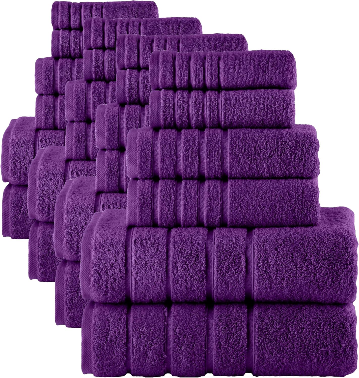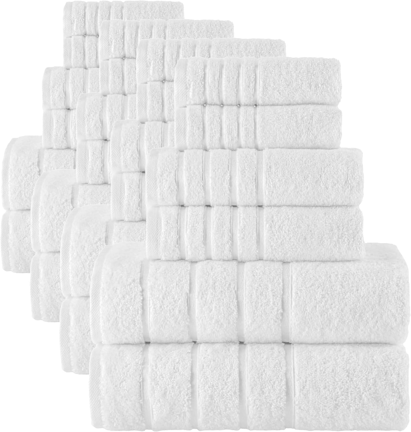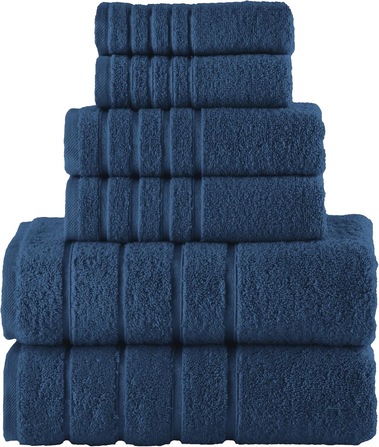 Elevate your bathing experience with the luxury of our 100% Turkish cotton Elegant Comfort 6-piece towel set. Meticulously crafted with great attention to detail, this exquisite collection exudes beauty. Adorned with a textured 4 lines Viscose Stripe design border, it adds a touch of elegance to your bathroom décor. Our towel sets are Oeko-Tex certified. They do not contain any harmful substances or materials. Each set contains 2 pieces of bath towels measuring 27 x 54 inches, 2 pieces of hand towels measuring 16 x 28 inches and 2 pieces of washcloths measuring 13 x 13 inches. Whether you're enveloping yourself in bath towels post-shower, drying your hands, or gently cleansing your face with a washcloth, these towels maintain their irresistibly soft texture. With each wash, they become even fluffier, ensuring enduring comfort and luxury. Elegant Comfort luxury cotton towel sets, are made from 650 GSM Turkish cotton, making them generously plush, highly absorbent, dry quickly and super soft to touch for maximum comfort.