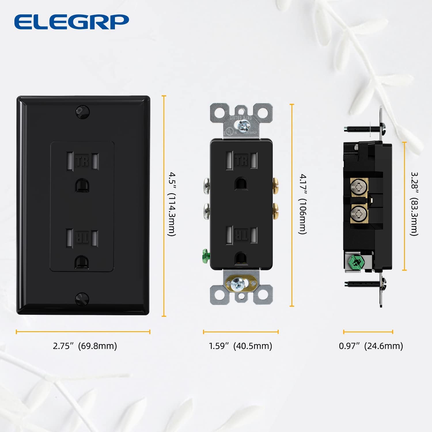 ELEGRP Single Pole Toggle Light Switch, 15 Amp, 120 Volt, Toggle Framed AC Quiet Switch, In Wall On/Off Switch Replacement, Self-Grounding, Residential and Commercial Grade, UL (10 Pack, Glossy Black) & ELEGRP Black Outlets Receptacles Tamper Resistant Outlet Decora Outlet Wall Outlet 15 Amp Outlet Electrical Outlet, Self-grounding Outlet, Duplex Outlet with Wallplate, 125V, 5-15R, UL Listed, 10 Pack