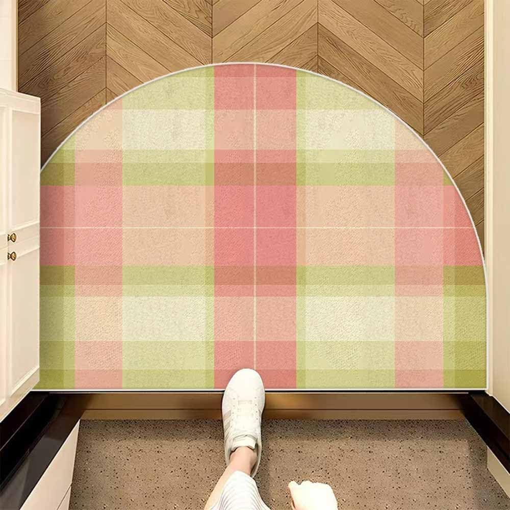 Non-Slip & Durable Material, Suitable for All Scenarios:Crafted with polyester fabric on the surface and made of durable fiber imitating cotton and linen, this half circle area rug is cozy to the touch, non-pilling, and fade-resistant. Its non-slip backing (non-woven fabric + plastic particles). Measuring 24×36 inches with a low-profile design, it fits low doors and entryways, and works for both indoor (kitchen, bathroom, nursery) and outdoor (balcony, garage) high-traffic areas. Versatile for All Home Styles:This modern half circle rug (also known as half moon rug) features seamlessly complements diverse interior styles like Nordic, pastoral, and minimalist. Whether used to add warmth to bedrooms or create a welcoming vibe at entryways, this area rug instantly elevates space decor and infuses your home with a lively spring garden atmosphere. Multi-Functional & Cost-Effective, Meets All Needs:This half moon rug is a true multi-tasker—it works as a bedroom rug, living room area rug, kitchen oil-proof mat, bathroom non-slip mat, front door welcome mat, and even a pet mat or commercial entrance mat. Combining durable material with practical design, this half circle area rug offers great value for both home decor and daily use. Machine Washable & Easy to Clean:This half moon area rug supports gentle machine washing with cold water for deep cleaning. For daily care, simply use a handheld vacuum to remove dust and pet hair, or sweep with a broom/mop. The stain-resistant surface ensures it stays fresh with minimal effort, solving troubles like pet hair and food residues. Thoughtful Details, Worry-Free to Use:If there are creases upon receipt, roll the half circle rug (patterned side outward) from any corner and let it sit for 1-2 days, or iron the back to smooth them out. It’s also foldable for easy storage when not in use, saving space.