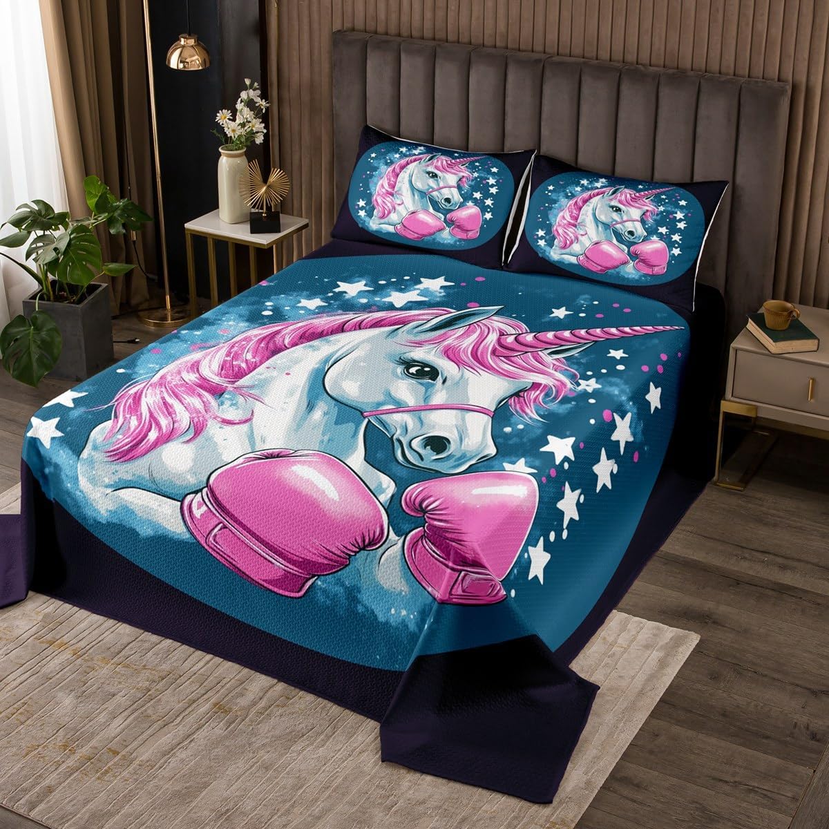 Makeover your bedrooms every season with our bedspread sets! Perfect item for your room,girls boys youth room, master bedroom. Useful and practical: A luxurious product for homes, dorm rooms, hotels, guest rooms. Unique design: Vivid Colors won't fade thanks to new 3D digital printing methods. These unique designs match well with various color palettes of your rugs, curtains, headboard, furniture, and all other decor accessories. Personalized: As manufacturers of digital printed home textiles, we follow current trends and bring you the latest home fashion. Note: The Bedspread and Pillow Shams are printed on the Front Side Only, the back of them are white colored. Comforter is Not Included in the set.