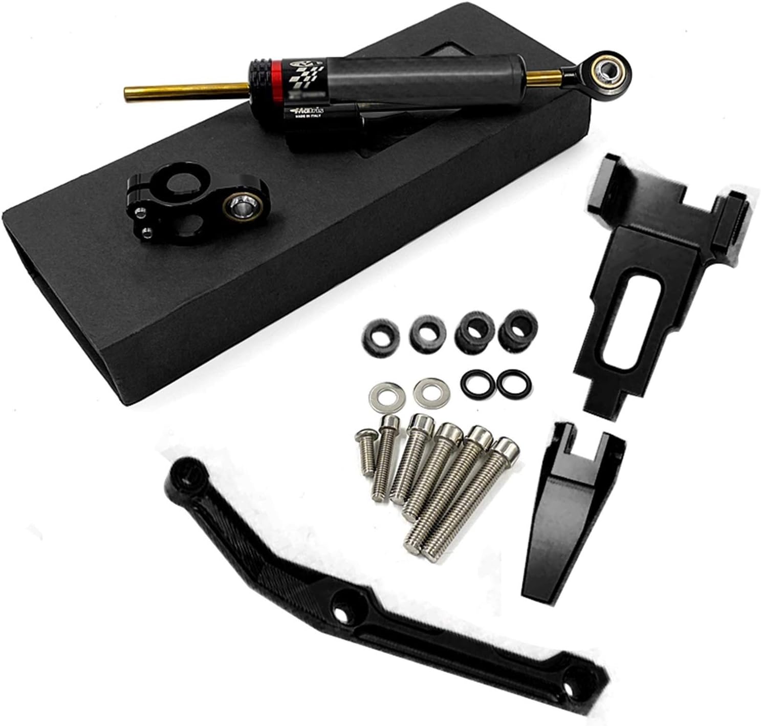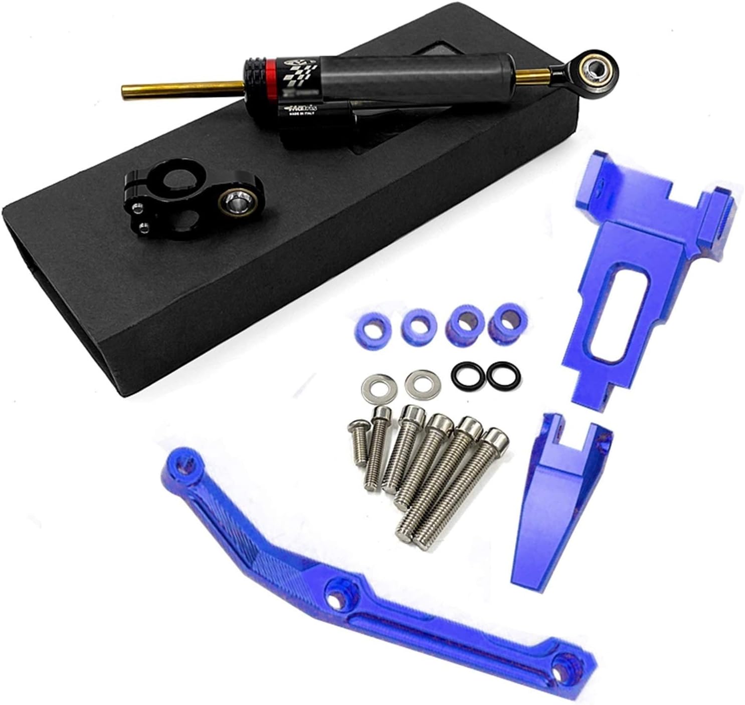 Description:-Condition:100%Brand New-Materail:T6061-T6 CNC Aluminum Alloy-Finish:Anodized Surface Finish-Item Name:Steering Damper Stabilizer Mounting Kit-Color:Black/Gold/Blue-Weight:0.9kg-Item Length:19cm/7.48inch-Item Width:7cm/2.75inch-Item Height:4.5cm/1.77inch