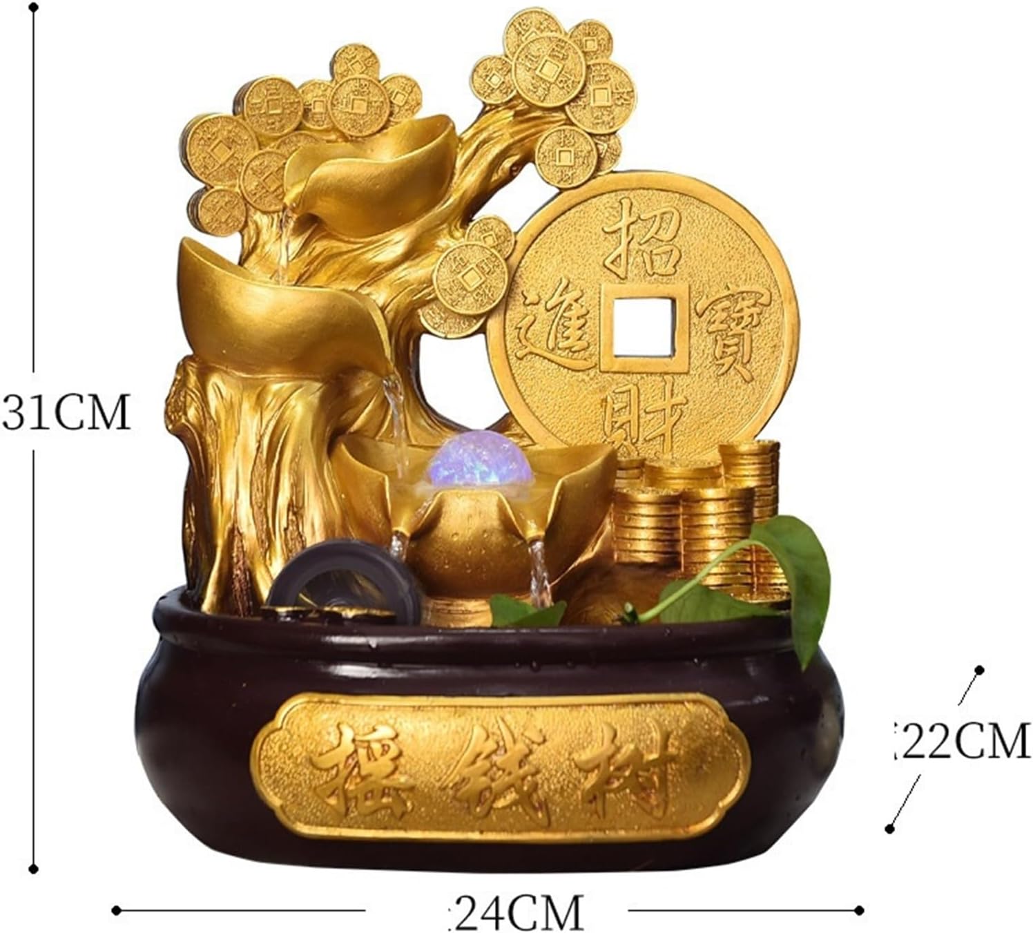 Elevate your indoor space for this Chinese Money Tree Tabletop Fountain, a stunning fusion of traditional symbolism and modern tranquility. Designed for a flowing LED-lit crystal ball, this piece draws on Feng Shui principles to enhance prosperity, harmony, and positive energy.The money tree is an age-old symbol of wealth and good luck, while the rotating crystal sphere represents the continuous motion of abundance. As the water flows gently, the ambient light from the LED illuminates the crystal, creating a captivating visual that's perfect for meditation rooms, desks, entryways, or sacred spaces.Crafted from durable, lightweight resin, the fountain is easy to maintain and fits beautifully into any interior decor—whether you’re seeking a gift, desk companion, or a peaceful home accent.