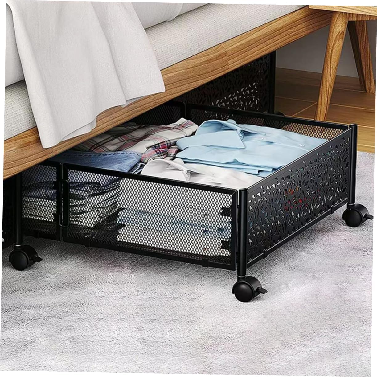 Package List 1 x under bed storage Characteristics -Material:Stainless steel, plastic storage for under bed - Drawer-style design: perfect for placing and storing items, no need to worry about items falling down under bed organizer. - material: Made of stainless steel, solid and sturdy, not easy to deform bed storage organiser. -Size:62.60X42.30X15.80cm/24.60X16.62X6.21in underbed storage organizer - Large capacity: The space under the bed is fully utilized, making your room more tidy storage container under bed. -Color:Black underbed storage organiser - Space-saving: The foldable design makes it easy to store and does not take up space underbed storage containers. - Multi-purpose: Can be used not only under the bed, but also under the sofa and other places under bed container.Goods Descriptionunder bed storage container This bed storage organizer will make home storage easier and smoother.underbed storage boxes This bed storage organizer is solid and sturdy, which can withstand use.under bed storage Features the stainless steel and plastic material, which has high durability, not easy to deform.storage under bed organizer Fine workmanship, ensures practicality