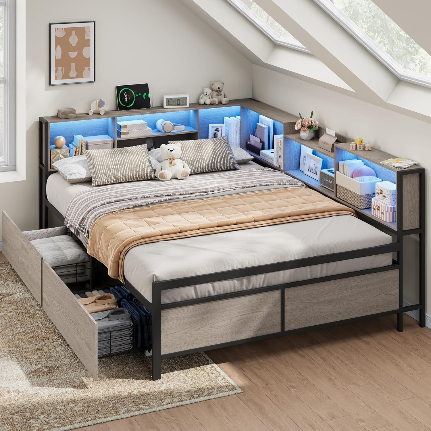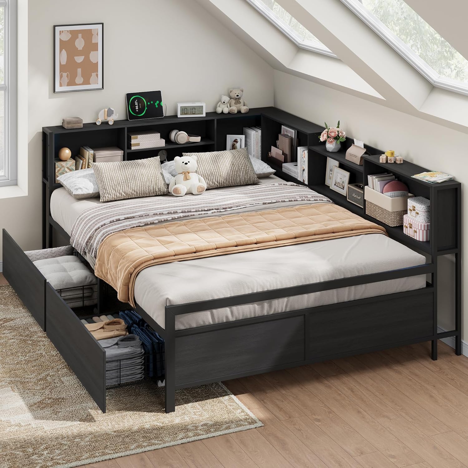 | Other Special Features of the Product | Charging Station, Foldable Desktop, No Box Spring Needed, With 2 Storage Drawers & Bookcase Headboard |