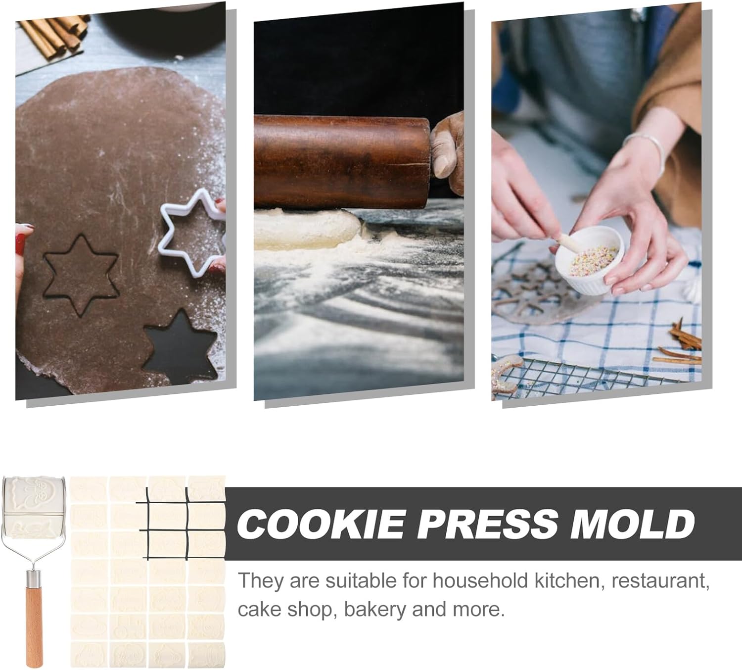 Package List 1 x roller 32 x mold Characteristics -Size:6.10X4.30X0.90cm/2.40X1.69X0.35in(cutter) -Color:Assorted Color -Material:PP -Product Info:Cookie mold -Size:23.00X7.50X7.00cm/9.04X2.95X2.75in(roller) -Smooth edges prevent or marks on your work surface or hands, making it safe for all users cookie molds. -The edges are sharp for making cookie but the material is safe for hands and skin. Different shape biscuit cutter molds to meet your different needs. -They are small in size, light in weight, easy to use and store, and will not take up too much space. -Suitable for homes, hotels, cake shops, bakery shops, dessert shops, restaurants and other places cookie . -They are simple and convenient to operate and use, they are very easy to demould, and they can keep the biscuits in perfect shape cookie mold.Goods Informationpastry cookie mold Creative design, both your friend and family will be fascinated by these creative shapes.cookies molds for baking Easy to use and clean.cookies mold These , practical and lovely cookie cutter is for DIY baking, which can make your food and party more interesting.