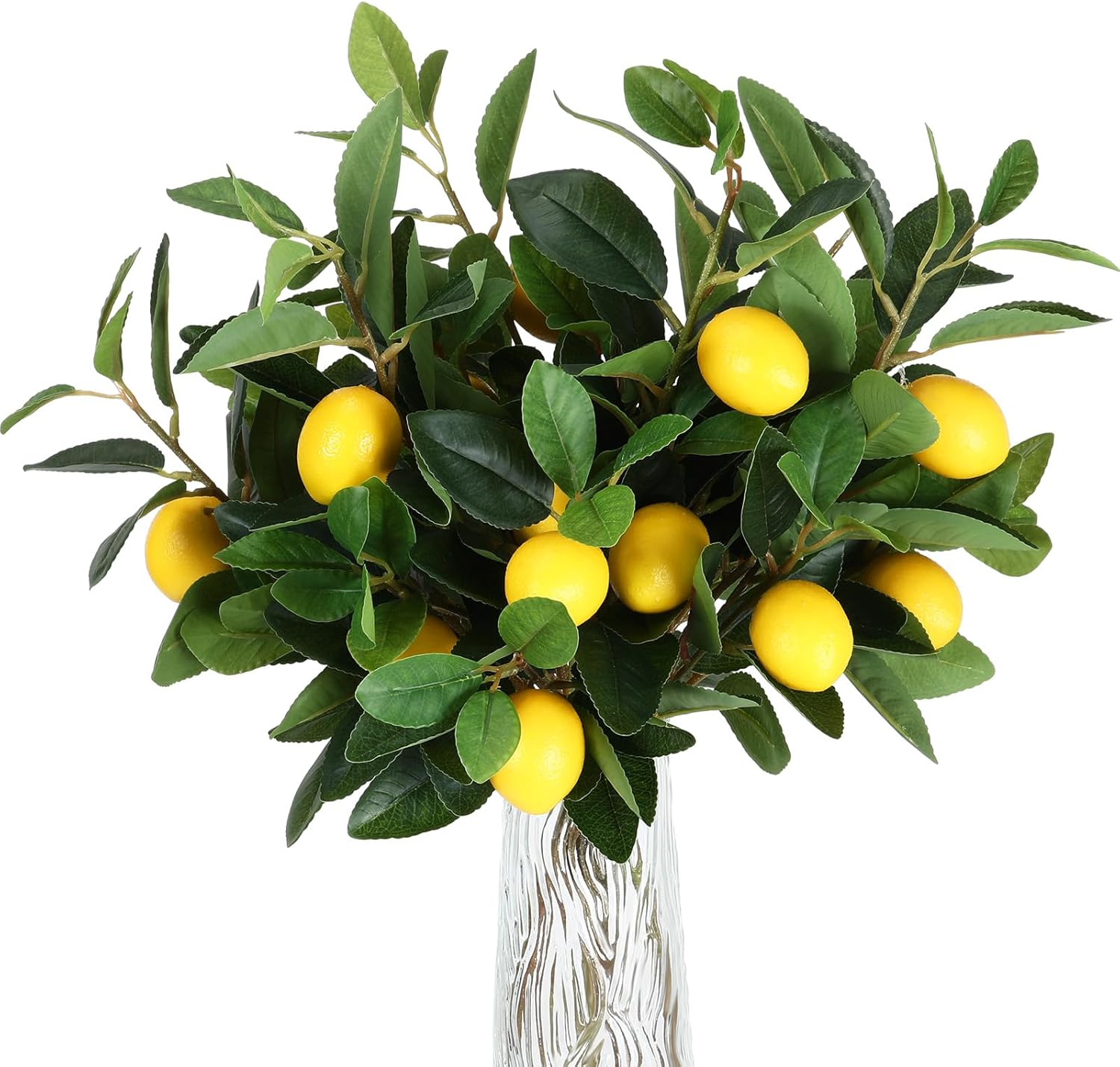 Features: Add more vitality: Our lemon tree picks and fake lemons features in bright green and yellow colors, noticeable and eye catching, which can well brighten your home, bringing more vitality to your home and bring you a good mood when you see them Wide applications: These lemon decorations are suitable for decorating dining tables, kitchens, living rooms, bathrooms, balconies, as well as restaurants and hotels, they are also suitable for various parties, weddings and festivals, and are thoughtful gifts for friends and family Specifications: Material: silk, polyurethane, polystyrene, plastic Color: green, yellow Size: overall height about 18 inches, flower stem part about 11.8 inches, root part about 6.2 inches, lemon fruit about 2 inches long Package includes: 24 x Artificial lemon branches Notes: Manual measurement, please allow slight errors on size. The color may exist a slight difference due to different screen displays. Warm Tips: the shape of the branches and leaves of the fake lemon plant will bend during long-term transportation, which will cause the appearance of the lemon plant you receive may not be the same as our pictures. If there is a difference, you can adjust the shape of the flower branches according to your own preferences, or adjust it according to our pictures to achieve the shape you want. (The branches can be bent and reshaped according to your needs)
