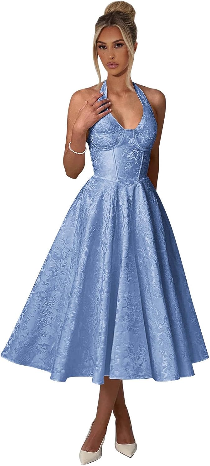 | Occasion Type | Corset Satin Ball Gowns, Embroidery Floral Wedding Guest Dress, Jacquard Satin Prom Dresses for Women, Sweet 16 Birthday Party Photo Shoot, Tea Length A-line Formal Dresses |