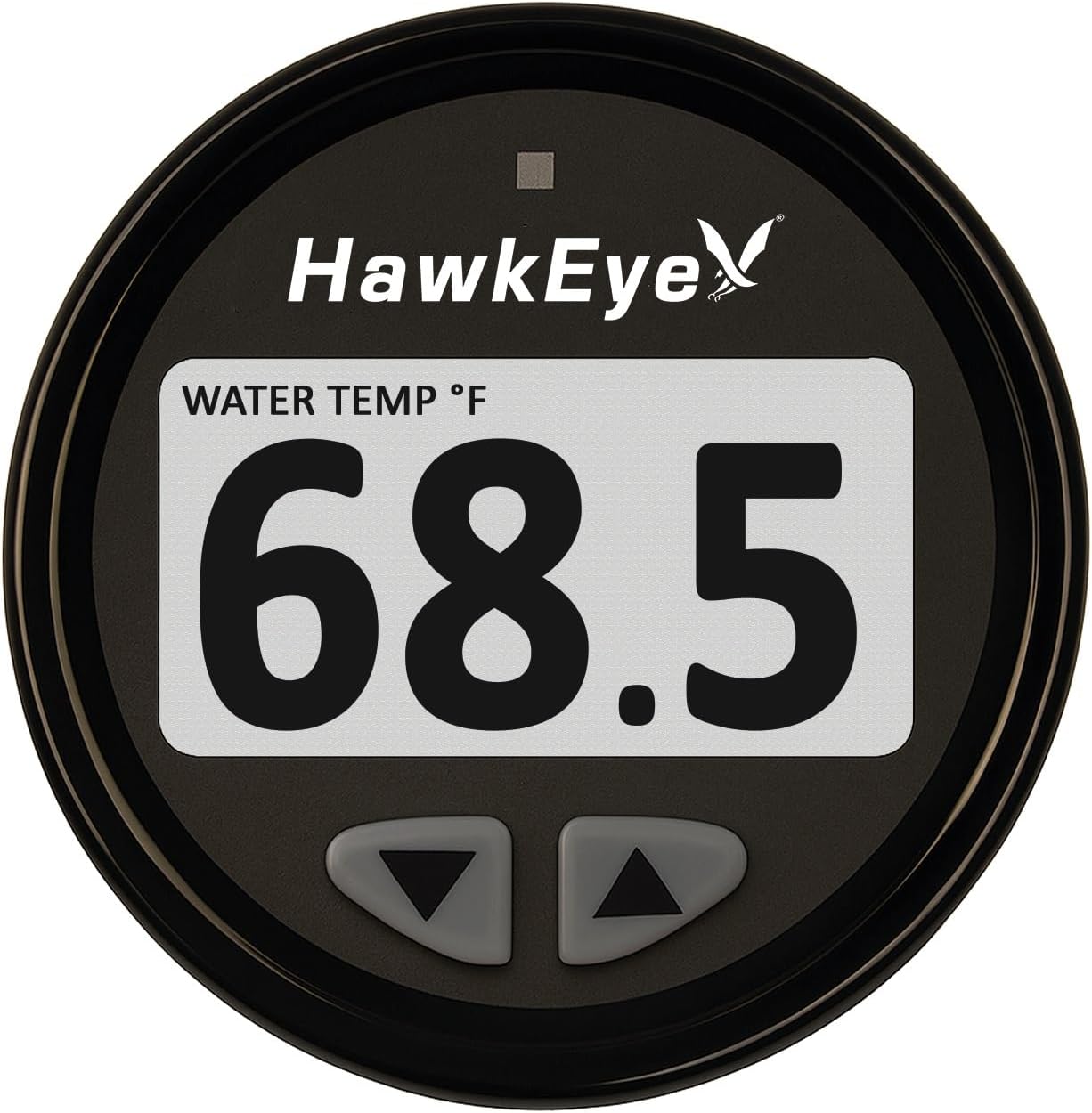 The HawkEye DepthTrax Edge is a next-generation depth finder that brings intelligent sonar technology to your vessel. This compact device features a vibrant HD color display with 360 nits brightness and adaptive display colors for optimal visibility in any lighting condition. With an impressive depth range of 2.5 to 600 feet, the 200 kHz transducer with a 14-degree beam angle delivers precise readings through the DepthTrax Intelligent Sonar engine. The system monitors comprehensive environmental data including depth, water and air temperature, voltage, and VDR information. Full DepthTrax PLUS App connectivity allows you to mirror data to your smartphone or smartwatch, adding HD fish finder capability for a complete on-water experience. Features include dual depth alarms with one-touch muting, automatic range and sensitivity adjustment, and keel offset functionality. The 2-inch diameter display is IPX5 waterproof rated on the front face and operates in temperatures from 0 to 160 degrees Fahrenheit. Installation is straightforward with plug-and-play setup, and the included transom mount transducer comes with a 30-foot cable. Available in white, black, or chrome finishes with style-matched design options. Designed and supported in the USA.