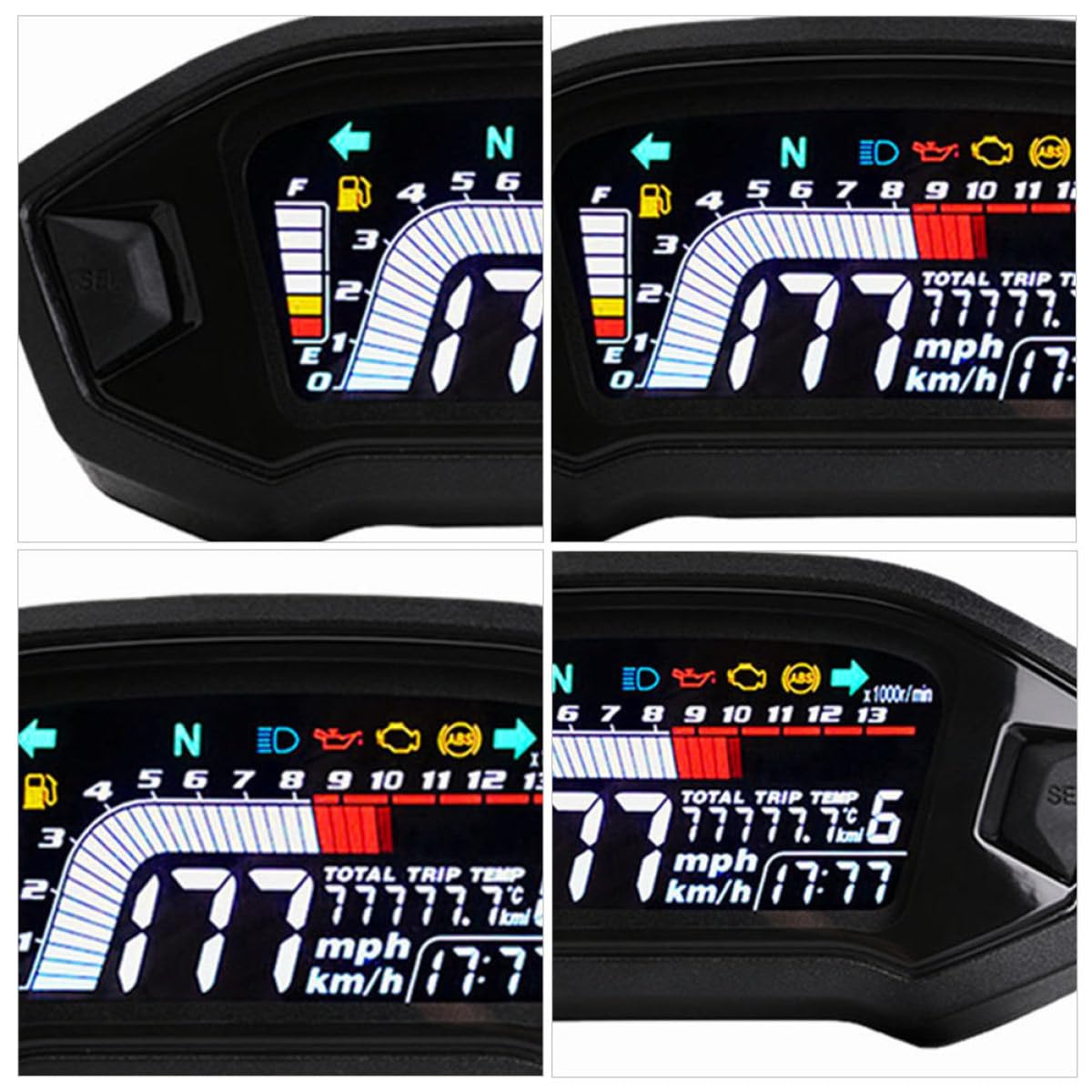 Package List 1 x Motorcycle Speedometer Characteristics - Size: 20.00X18.00X8.00cm/7.86X7.07X3.14 inch. -Product Info:LCD instrument - display range: 0-19 /h (miles) Motorcycle Speedometers. - Gear position: 1/2/3/4/5/6 N LED Display Tachometer. - Odometer display unit: 0. Motorcycle Speedometer. - Color: Black. - Odometer display: 0-999999 kilometers (miles) Motorcycle Tachometer. - range: 0-13000 r/min. - Internal display: <0.5 seconds. - Power supply voltage: -12V. - Odometer display distance: 999. (miles). - display: km/h, mph. - Material: ABS. - Odometer display unit: 0. . - It is manufactured with professional technology to ensure the of the product and can work for a long time Universal Digital Speedometer. Specification Speedometer Gauge - There is a speeds sensor designed on the motor meter, and this design can ensure its high working precision and professional performance Motorbike Odometer. - This motor meter has robust ABS shell with clear lens and waterproof and impact resistance Digital Speedometer. - So all these good designs allow itself to withstand slight collision. - This motor meter has a tachometer, speedometer and gear indicator, and all the parts are combined in one item, so it is a high performance kit for a motorcycle.Goods InformationLED Display Tachometer This is a digital speedometer integrated with tachometer and gear indicator, with lcd display which shows the rotational and gear precisely.Motorbike Odometer So do not hesitate to take one to your racing safety.Motorcycle Speeds Sensor A great add-on decoration for your motorcycle