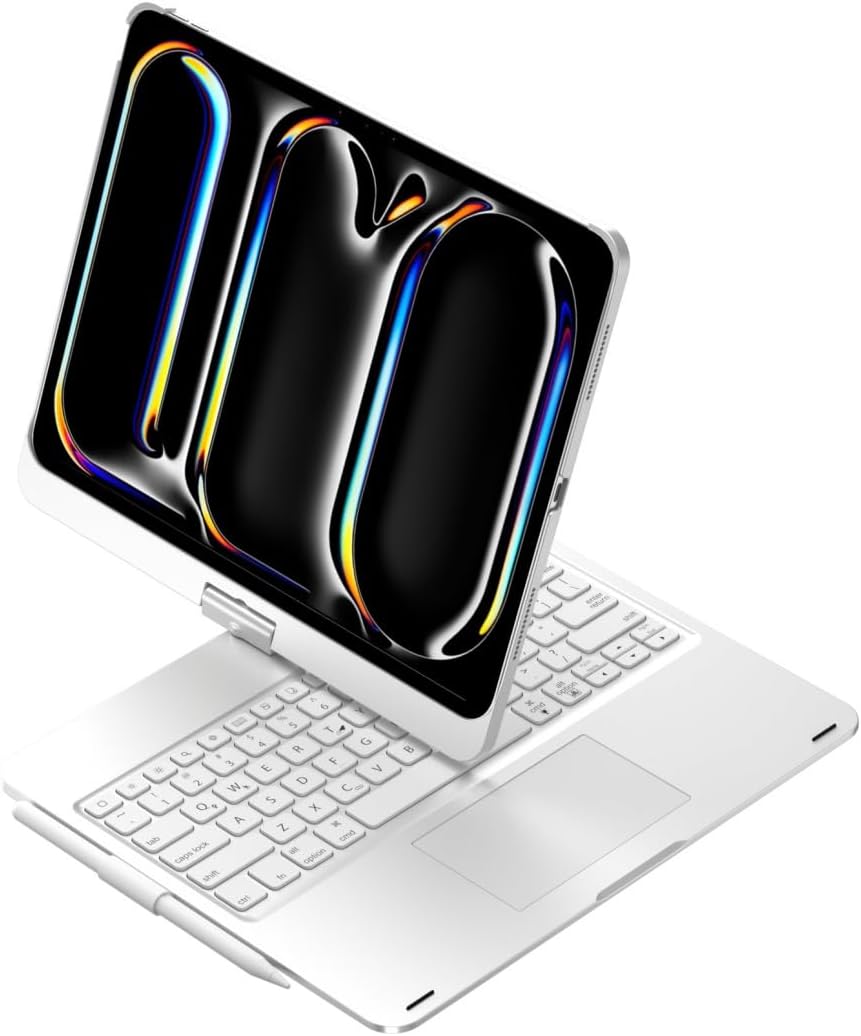 HENGHUI 360 Rotatable Touch Keyboard for iPad 9th 8th 7th Generation 10.2 inch, iPad Air 3rd Gen Pro 10.5 Backlight Keyboard with Trackpad Foldable Keyboard ,Silver